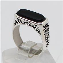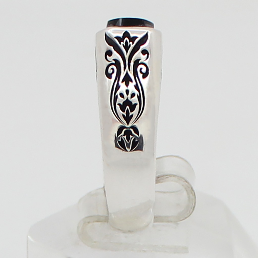 انگشتر نقره باسنگ عقیق طرح قلم زنی