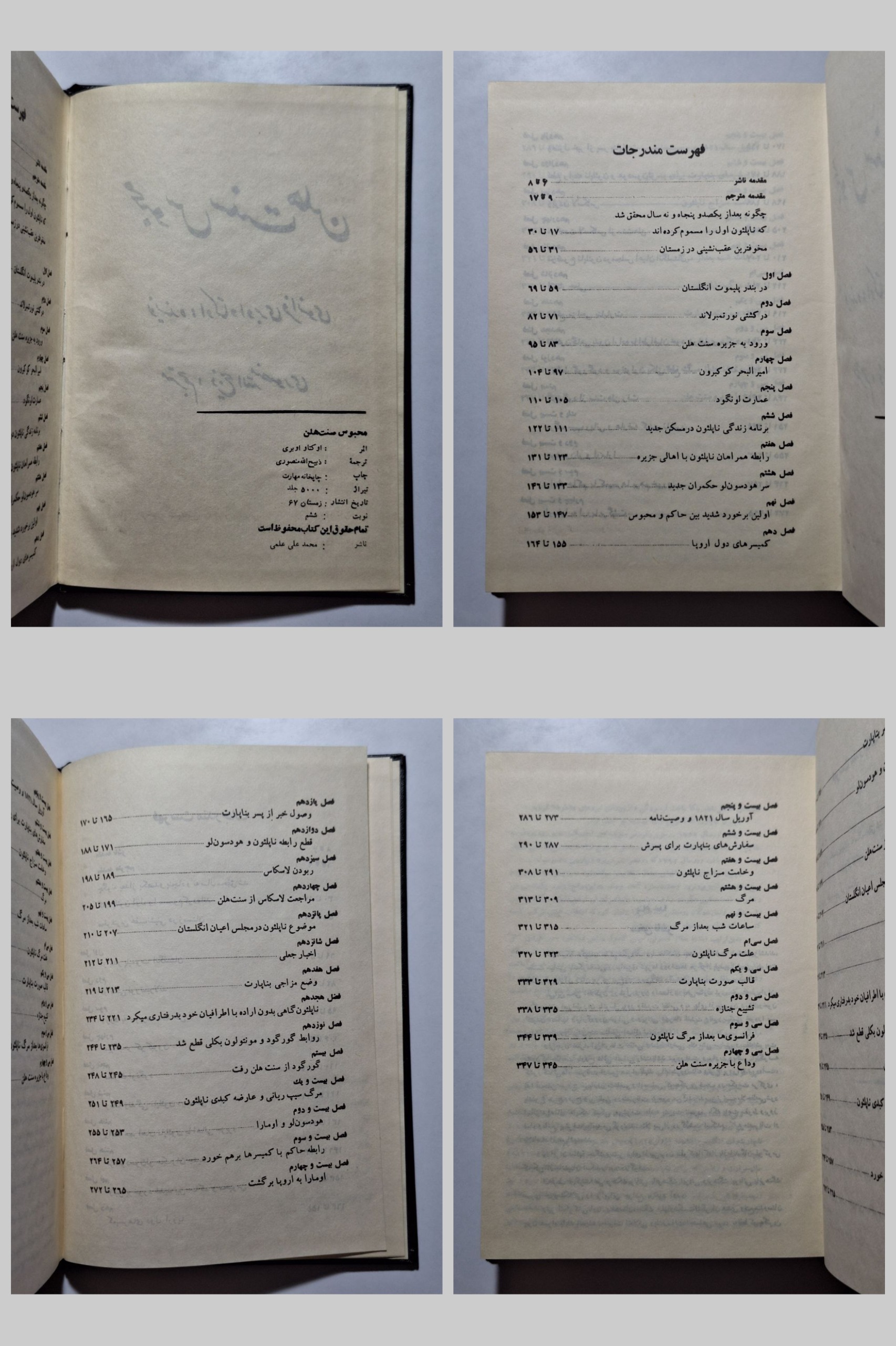 در این کتاب، سرگذشت پرماجرای "ناپلئون بناپارت" امپراطور فرانسه از 8 آوریل 1792 زمانی که وی معاون فرمانده گردان جنگجویان داوطلب جمهوری خواه بود تا 5 ماه می 1821 که بر اثر سرطان معده در تبعید در جزیره سنت هلن درگذشت بازگو شده است.
