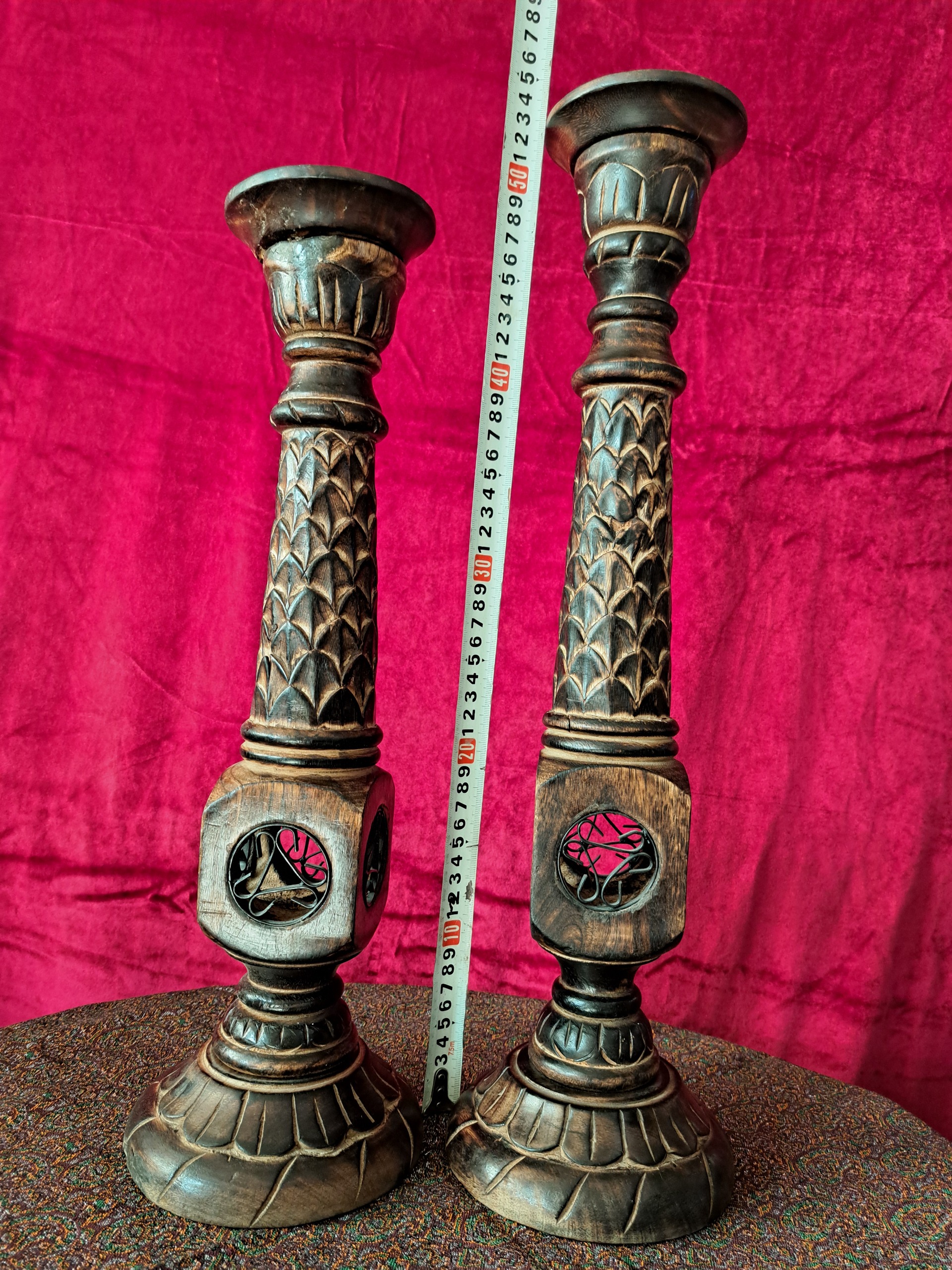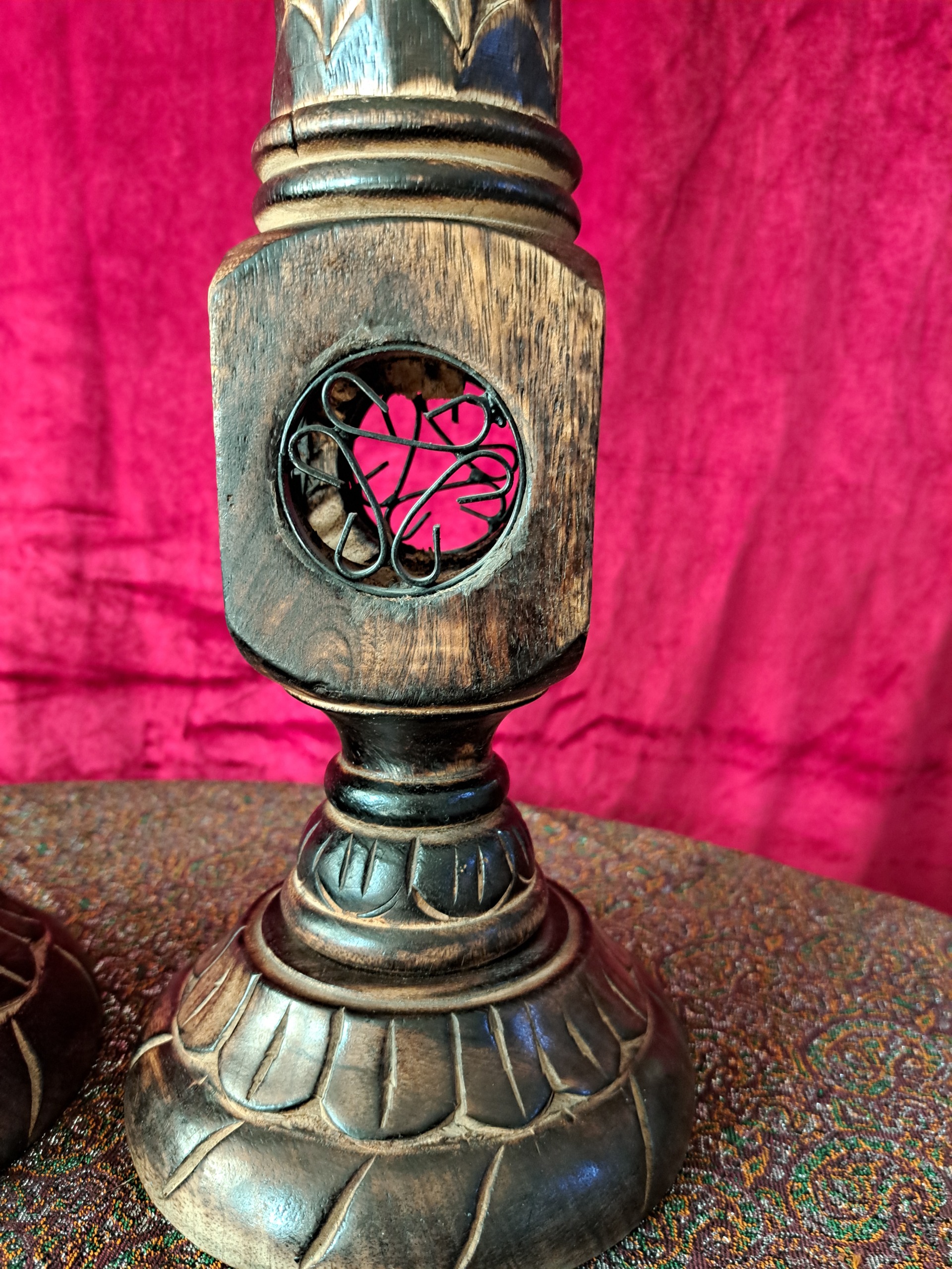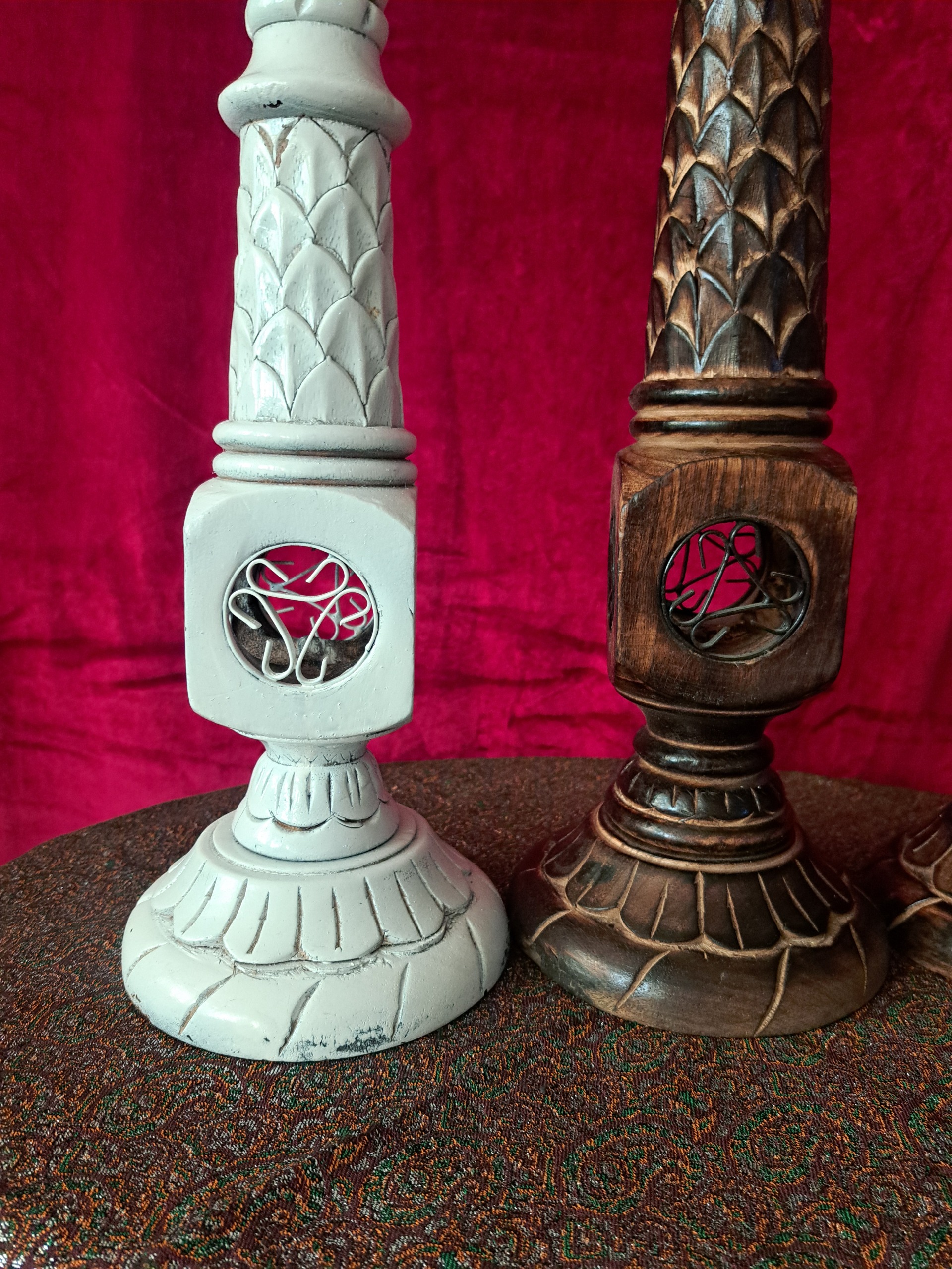 سه عدد جاشمعی چوبی هندی کار دست یکیش رنگ شده میتونید رنگشو ببرید و همرنگ بقیه کنید