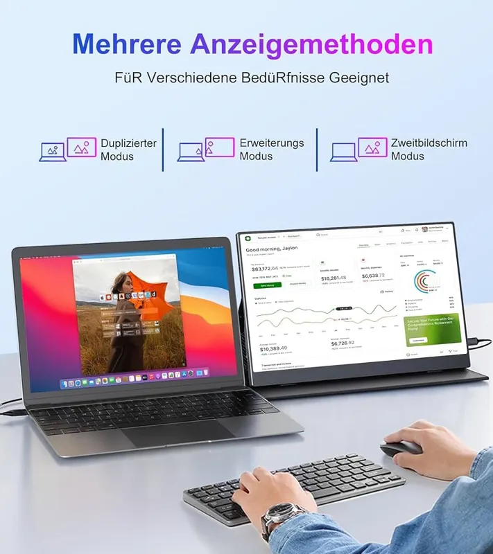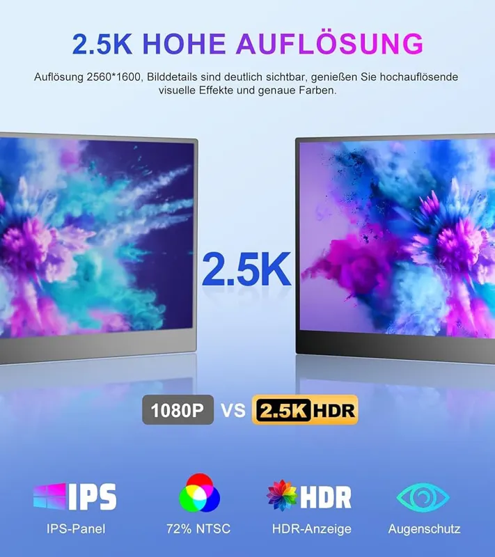 مانیتور قابل حمل، صفحه نمایش قابل حمل 13.3 اینچی 2.5K IPS، اندازه صفحه نمایش 16:10، QHD 2560 × 1600 IPS، HDMI، USB-C برای لپ تاپ/مک بوک/کامپیوتر/ایکسباکس/پلیاستیشن/سوئیچ، با قاب محافظ
