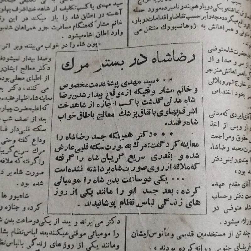 مجله خواندنیها سال 1323 تشییع جنازه رضاشاه در مصر