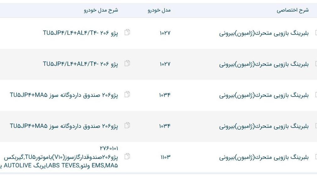 دست کامل بلبرینگ ژامبون اورجینال پژو 206 صندوق دار دوگانه سوز