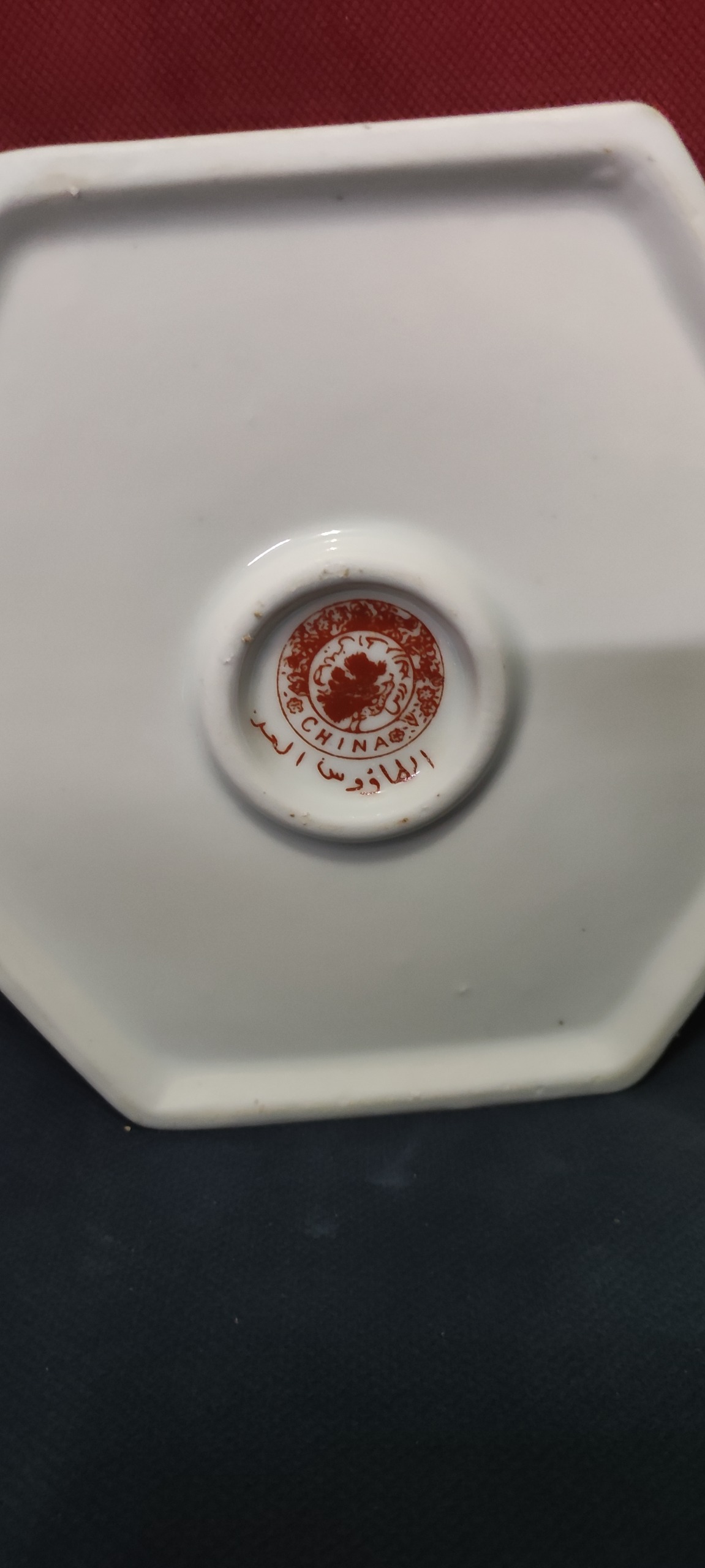 شکلاتخوری چینی شش ضلعی طرح کالسکه قدیمی، آنتیک و کلکسیونی