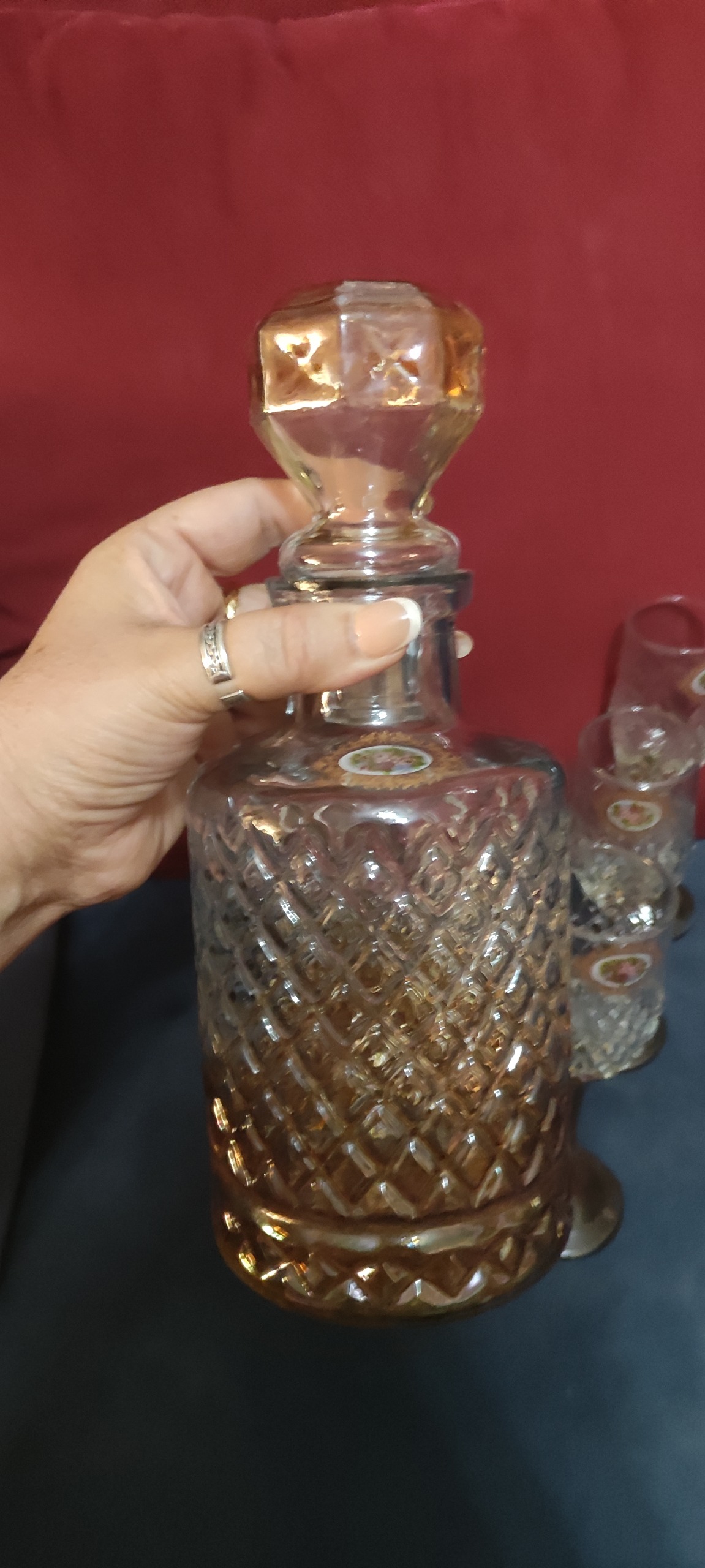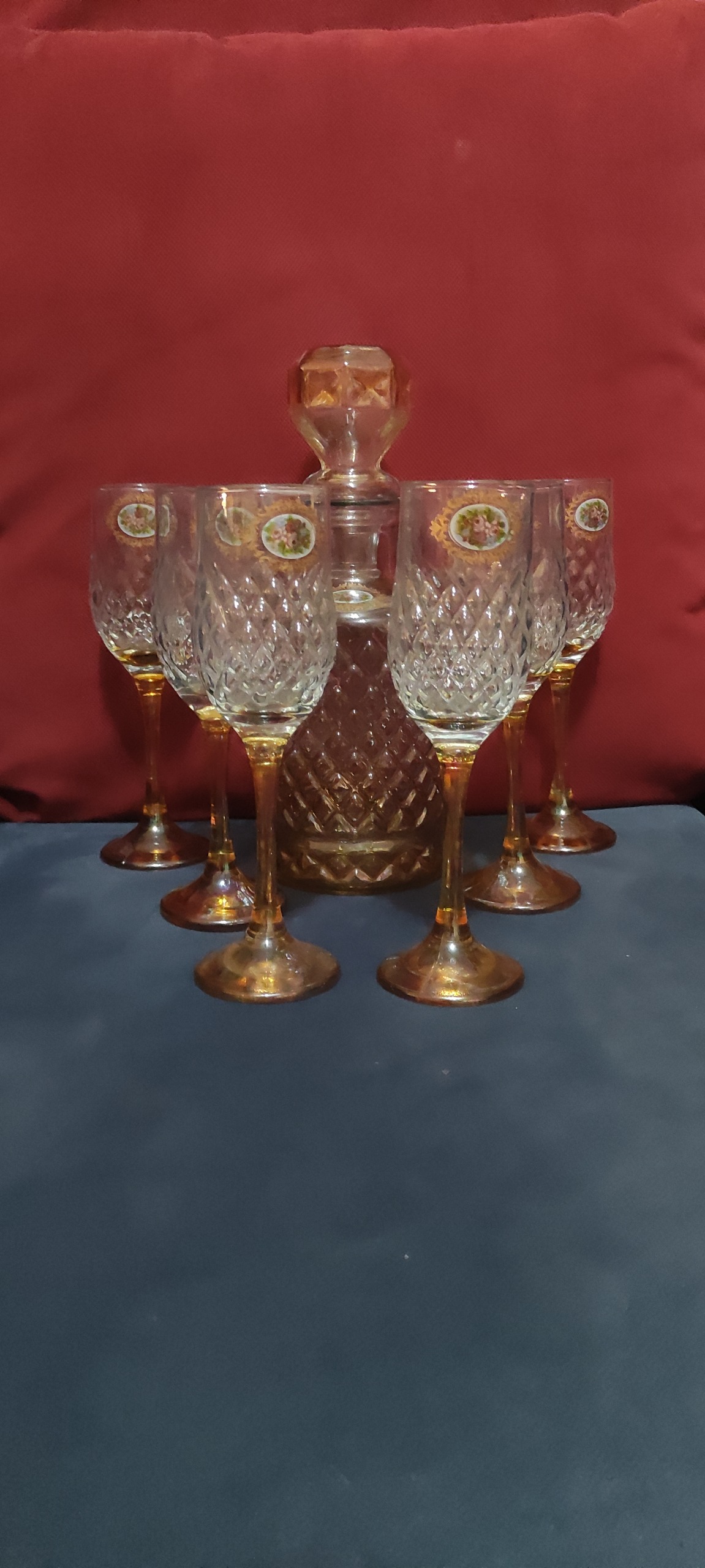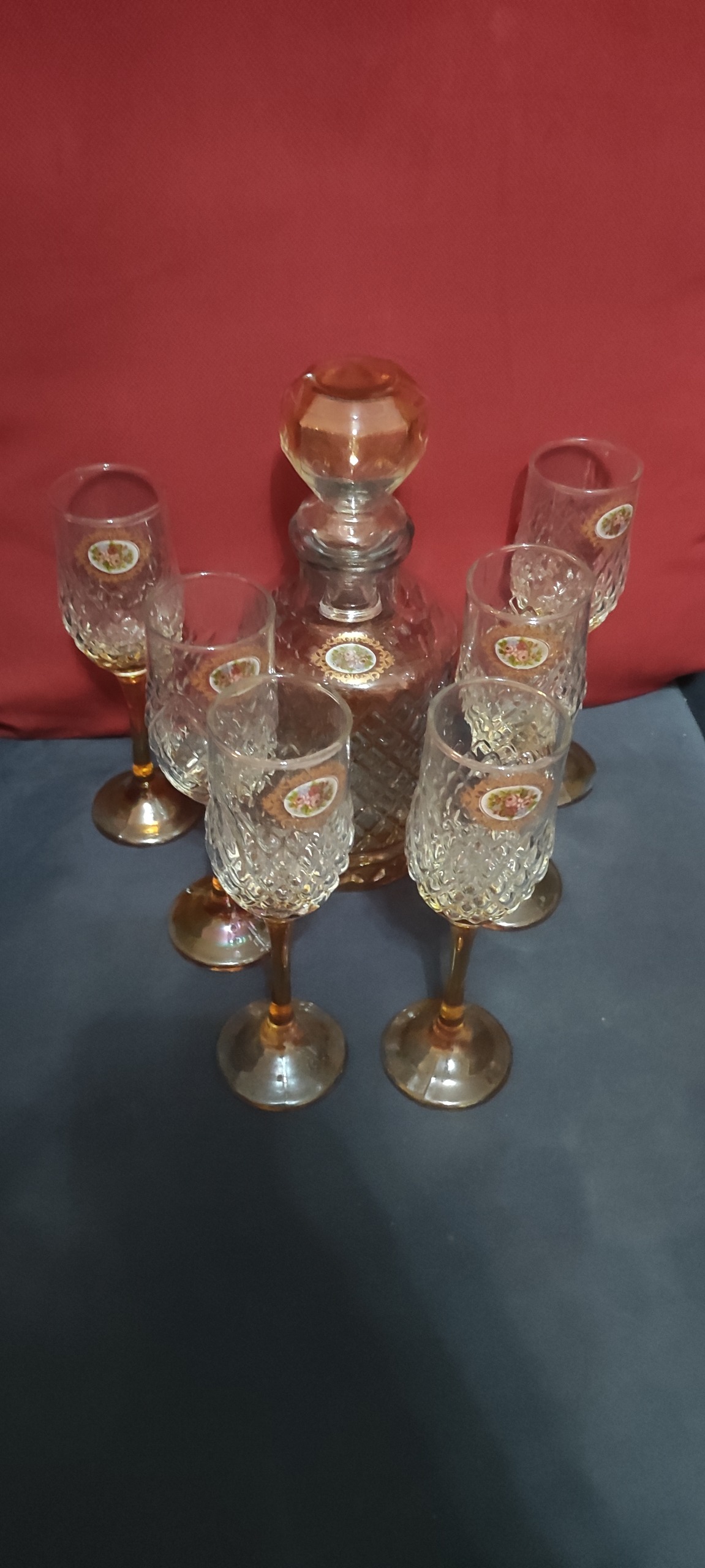6 عدد جام و 1 عدد ساغر یا تنگ بسیار زیبای بلور عسلی خشتی خاص و زیبا تمیز و سالم