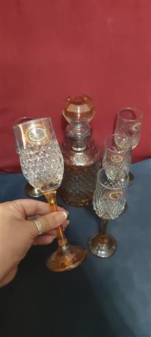 جام و ساغر یا تنگ و جام بلور عسلی خشتی کمیاب