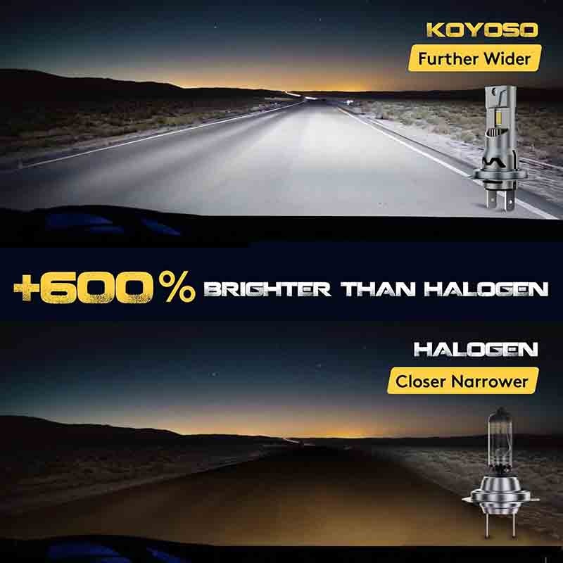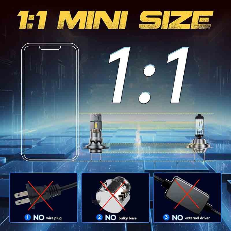 اندازه هالوژن 1:1 لامپ LED کویوسو H7 با مدل های مشابه لامپ های هالوژن، بدون نیاز به ایجاد تغییرات یا آداپتورهای اضافی. آن را به برق وصل کنید و فقط در 5 دقیقه آماده شوید!