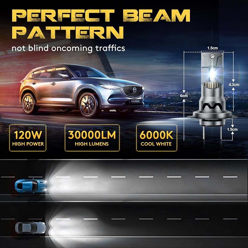 پرتوی بینقص چراغ H7 LED با طراحی پرتو لامپهای هالوژن، با یک صفحه و تراشه مسی نازک، روشنایی یکنواخت 360 درجه بدون نقاط تاریک ارائه میدهد. بدون تابش خیرهکننده برای ترافیک روبرو، در شب با خیال راحت رانندگی کنید.