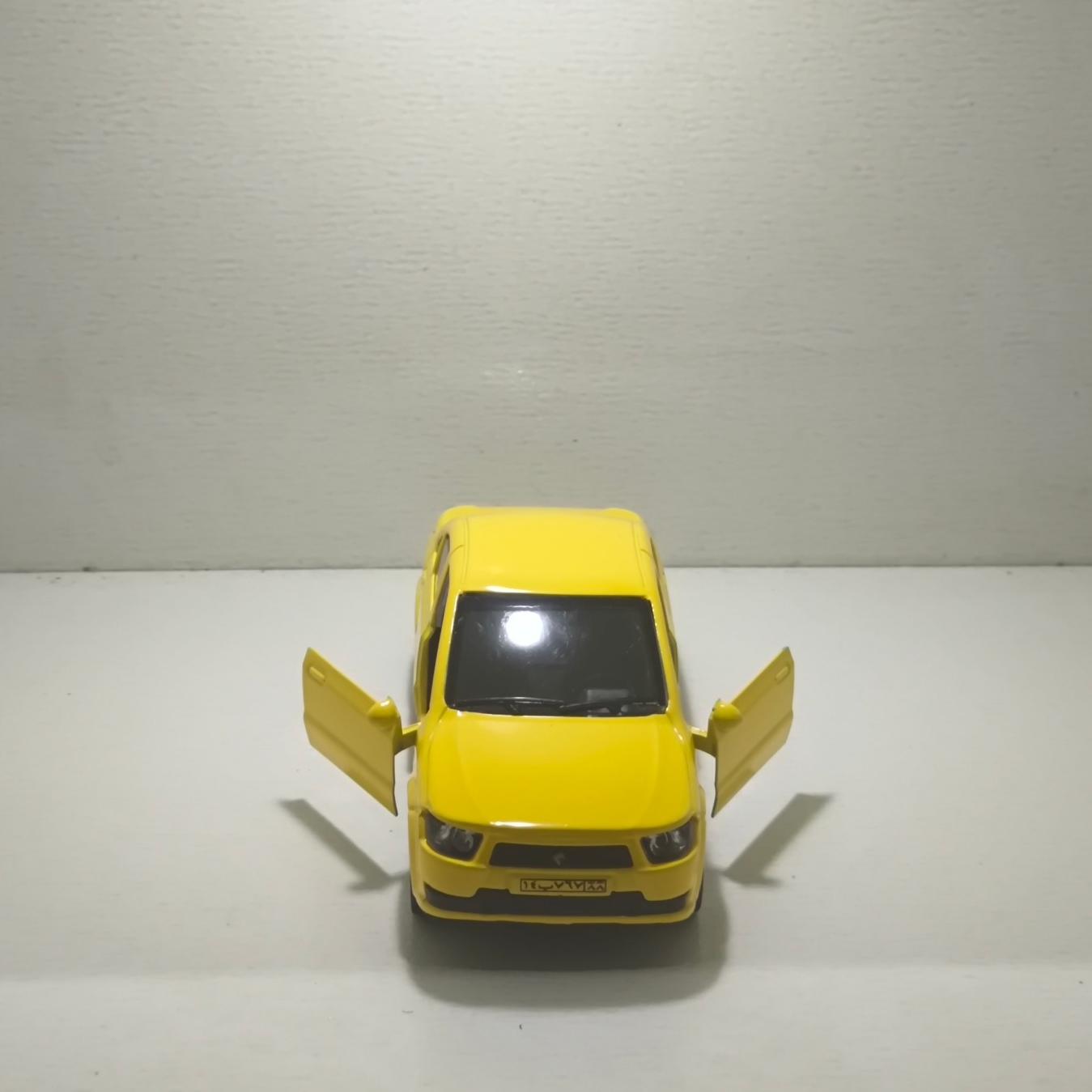 ماکت ماشین فلزی دنا موزیکال و چراغدار و عقب کش رنگ زرد، دورب جلو باز میشود کیفیت فوقالعاده است و جزئیات داخلی ماشین به خوبی رعایت شده است.