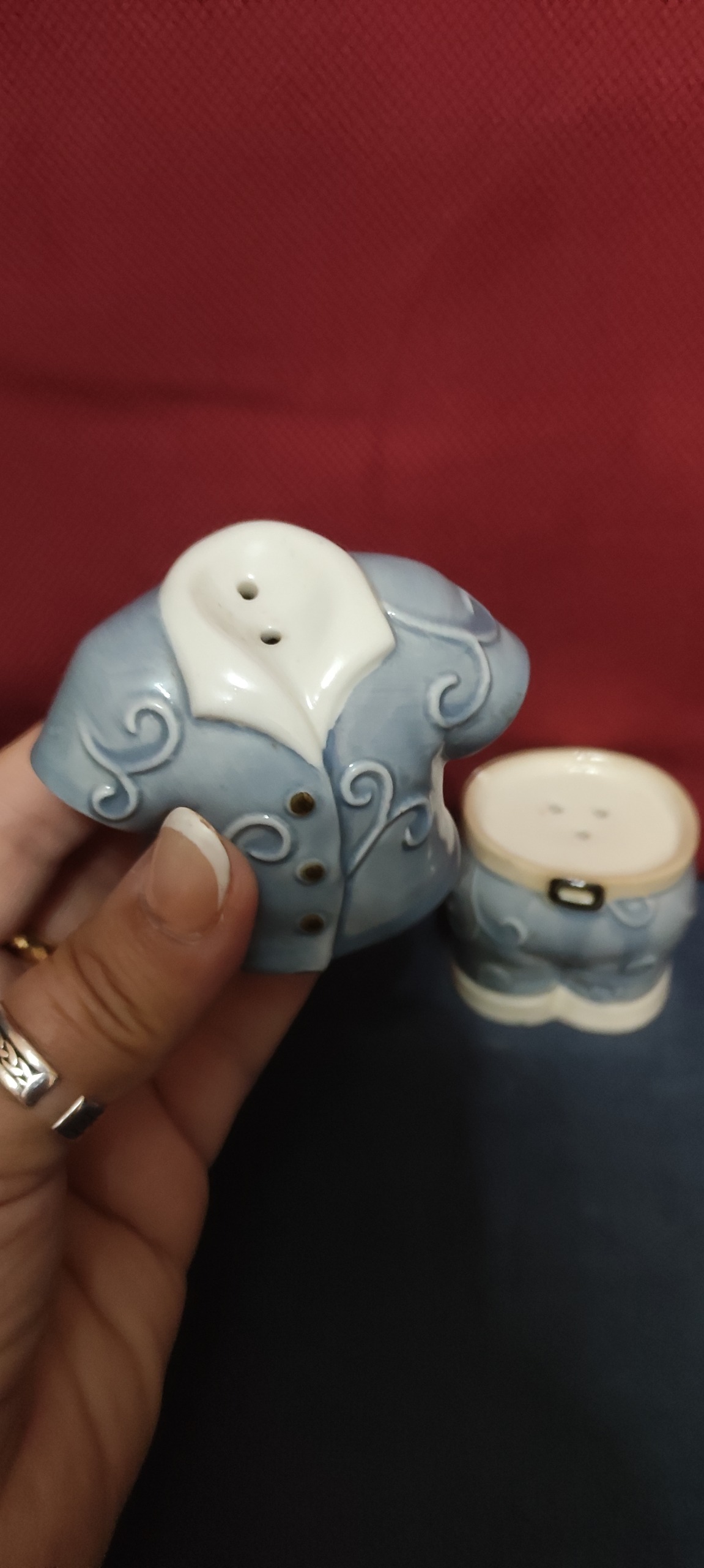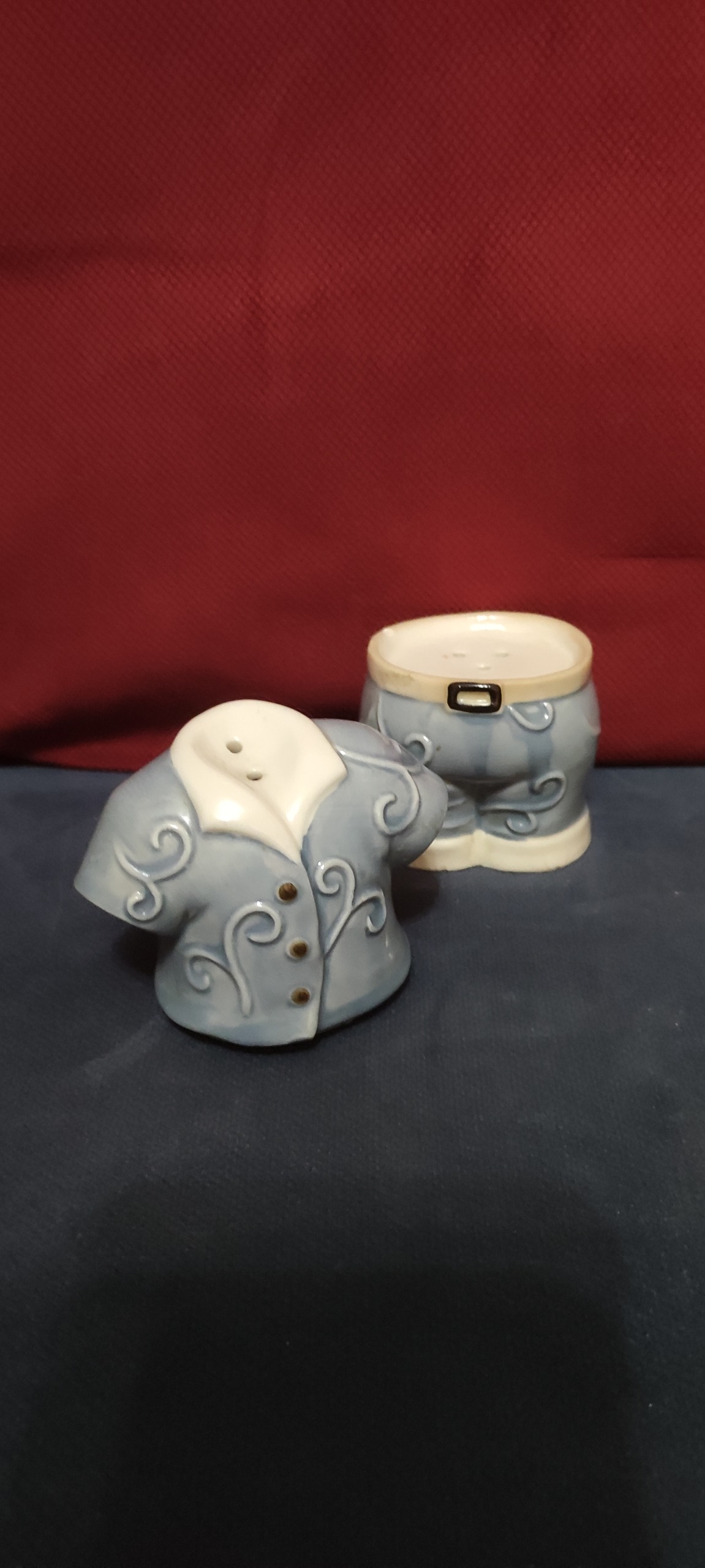 جفت نمکدان یا نمکپاش چینی قدیمی و آنتیک طرح لباس. بسیار خاص و نایاب