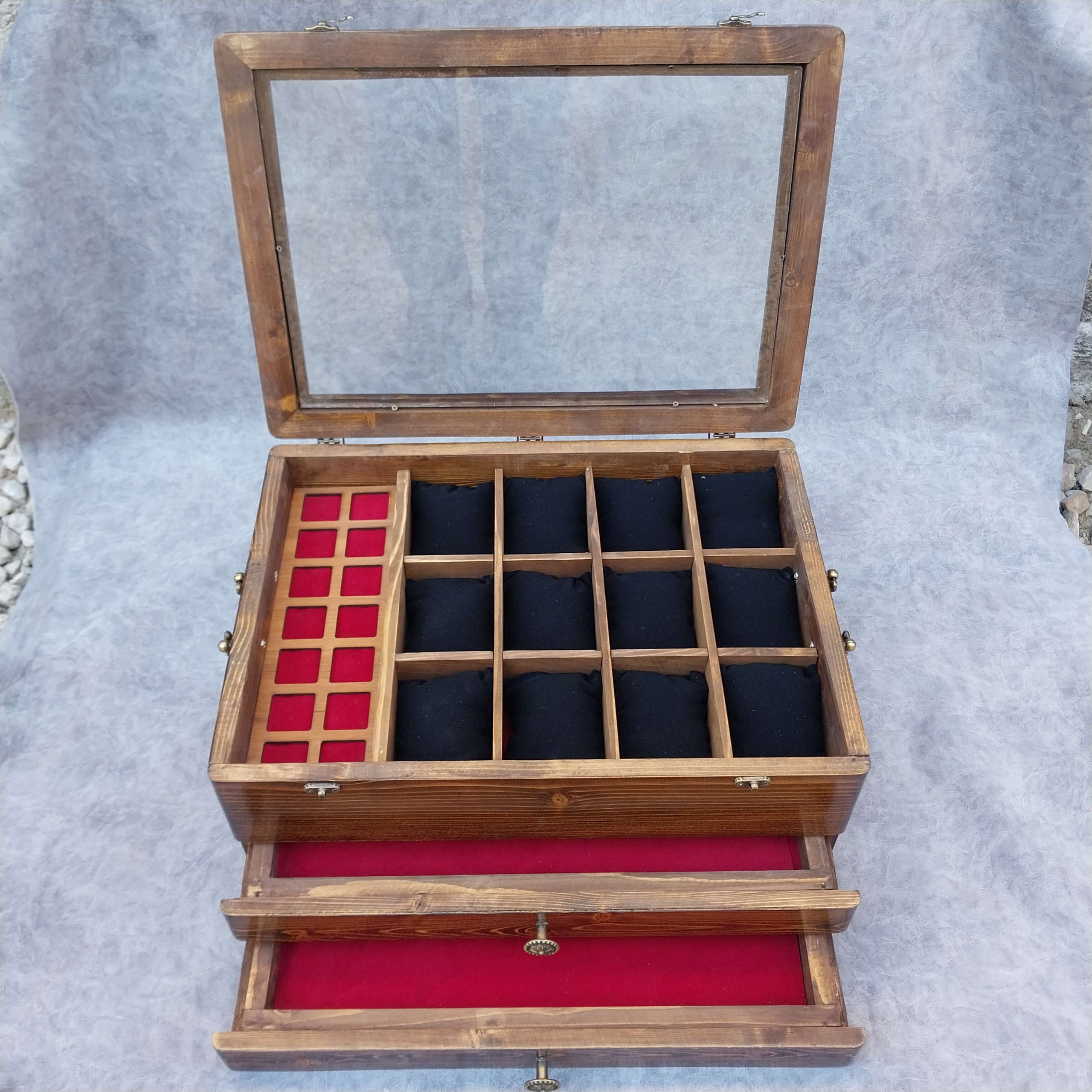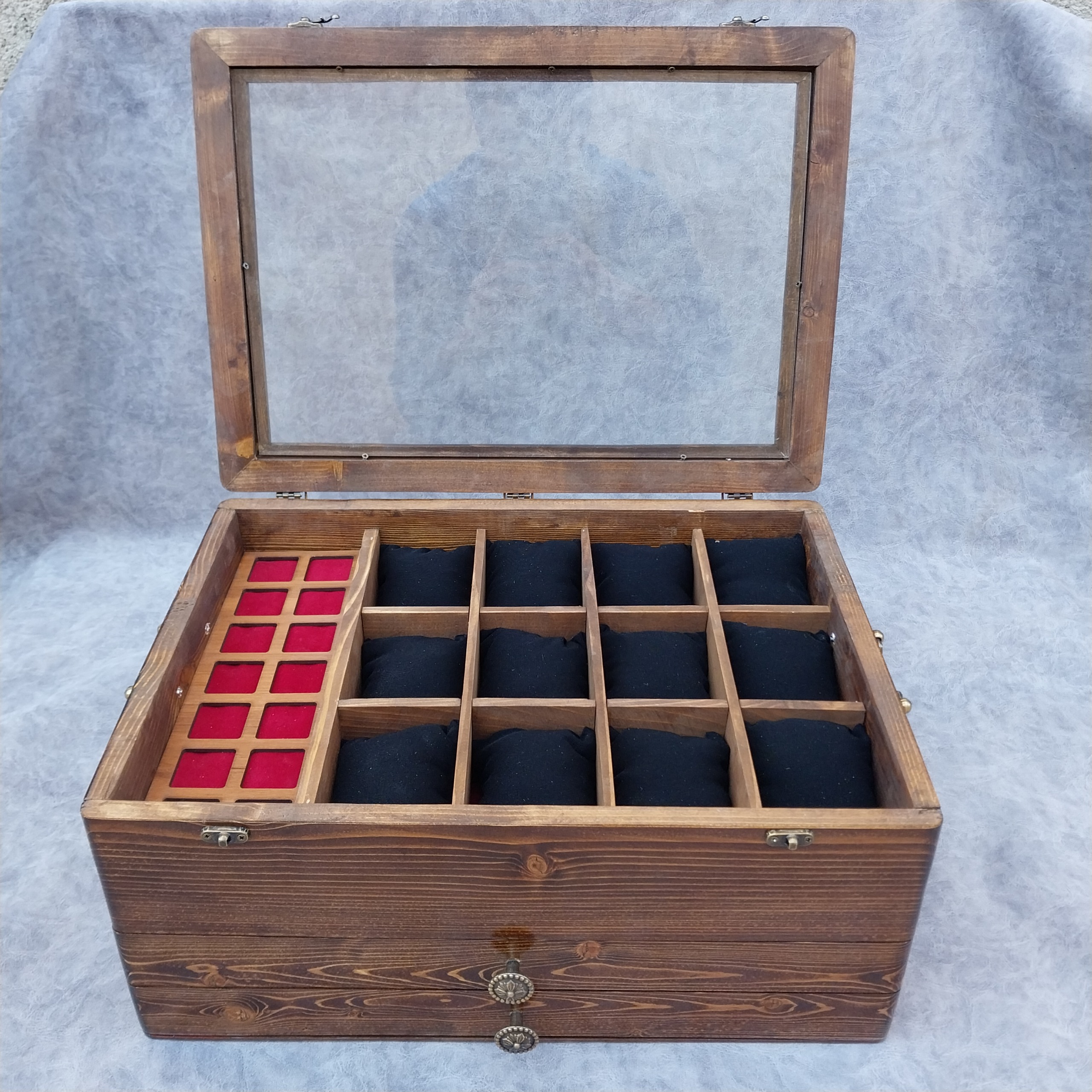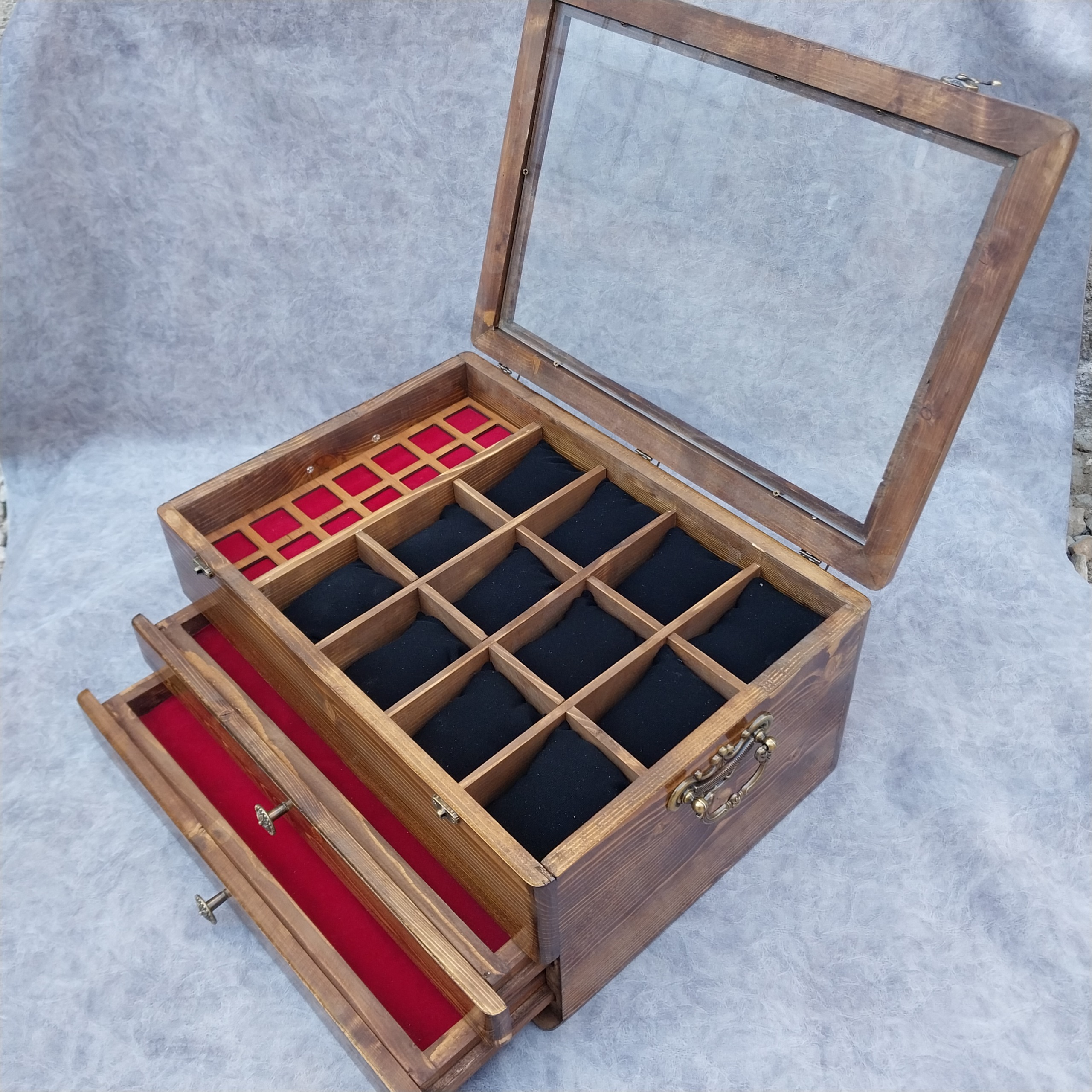 جعبه چوبی ساعت و انگشتر کلکسیونی