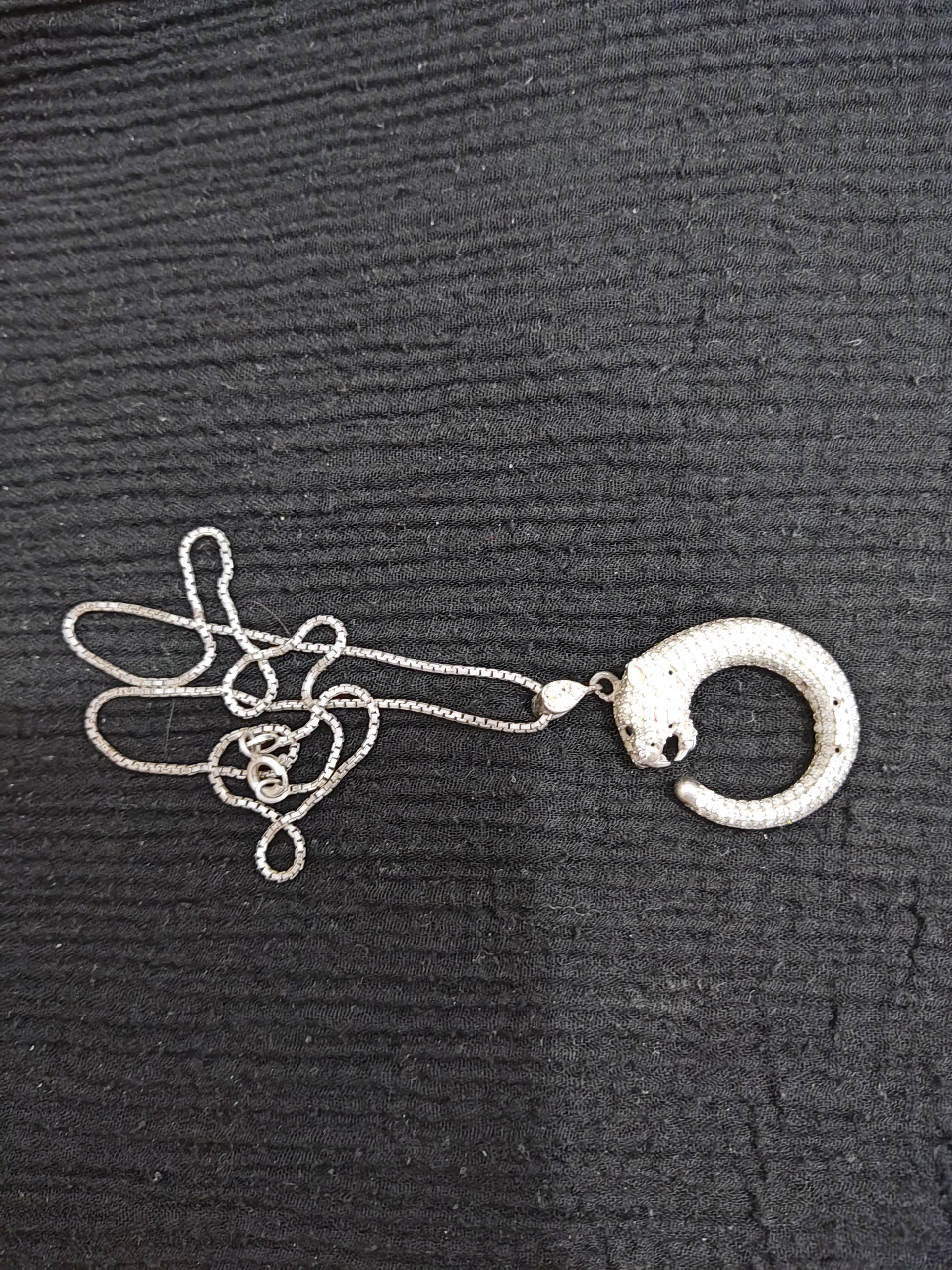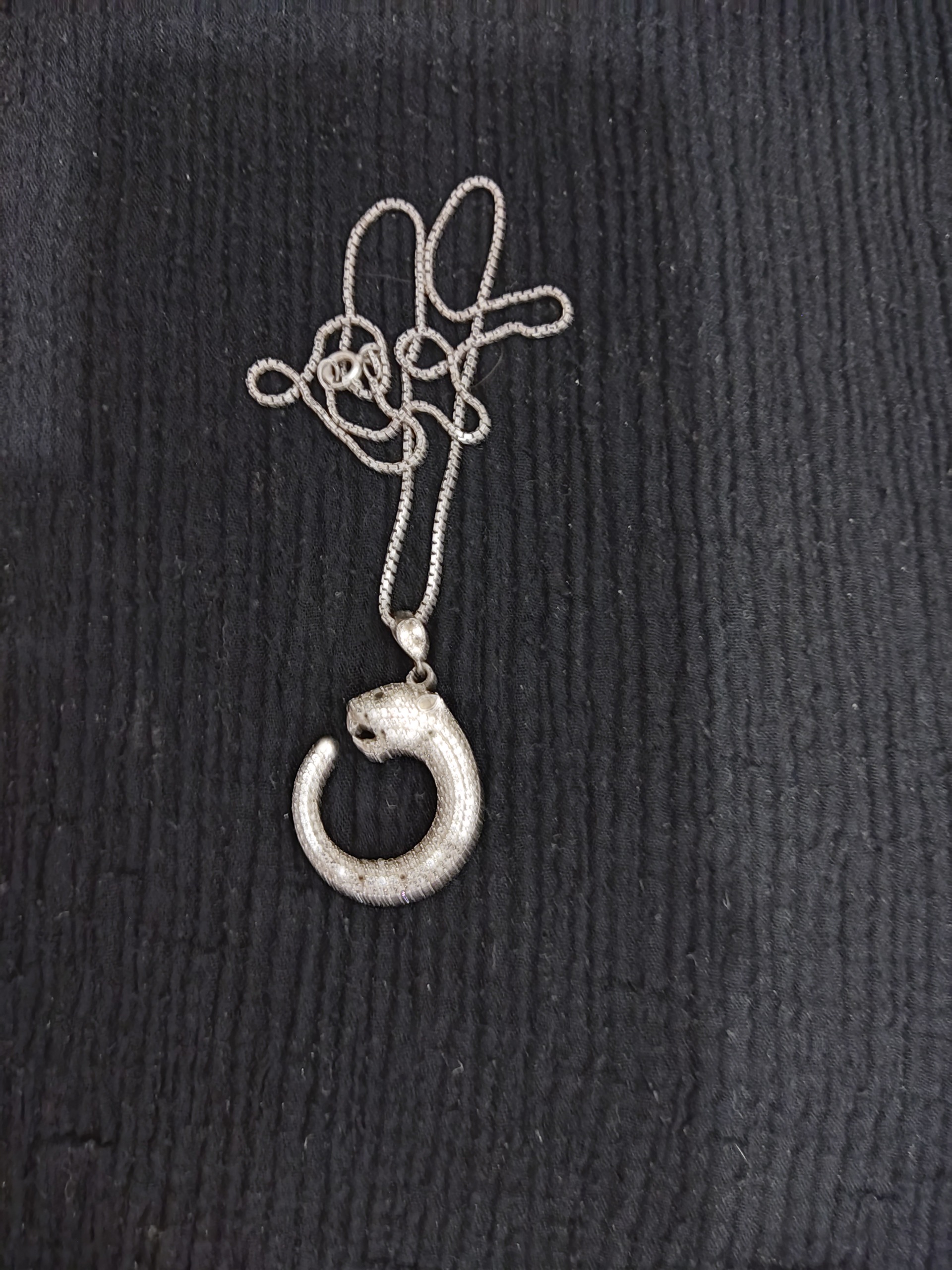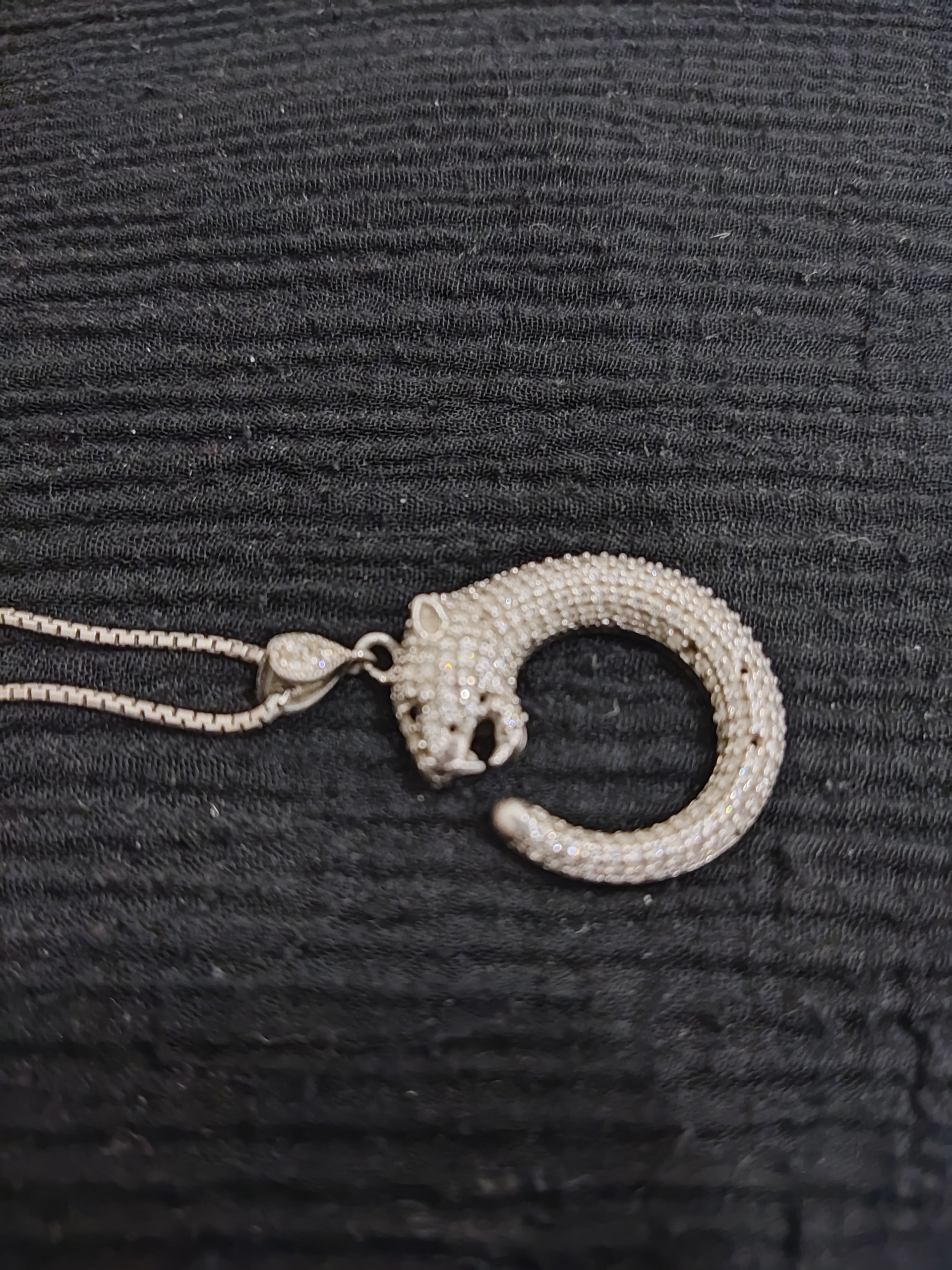 مدال جگوار نقره عیار 925 با روکش ضد حساسیت با آبکاری طلای سفید با نگین اتمی وزن حدود 6 گرم