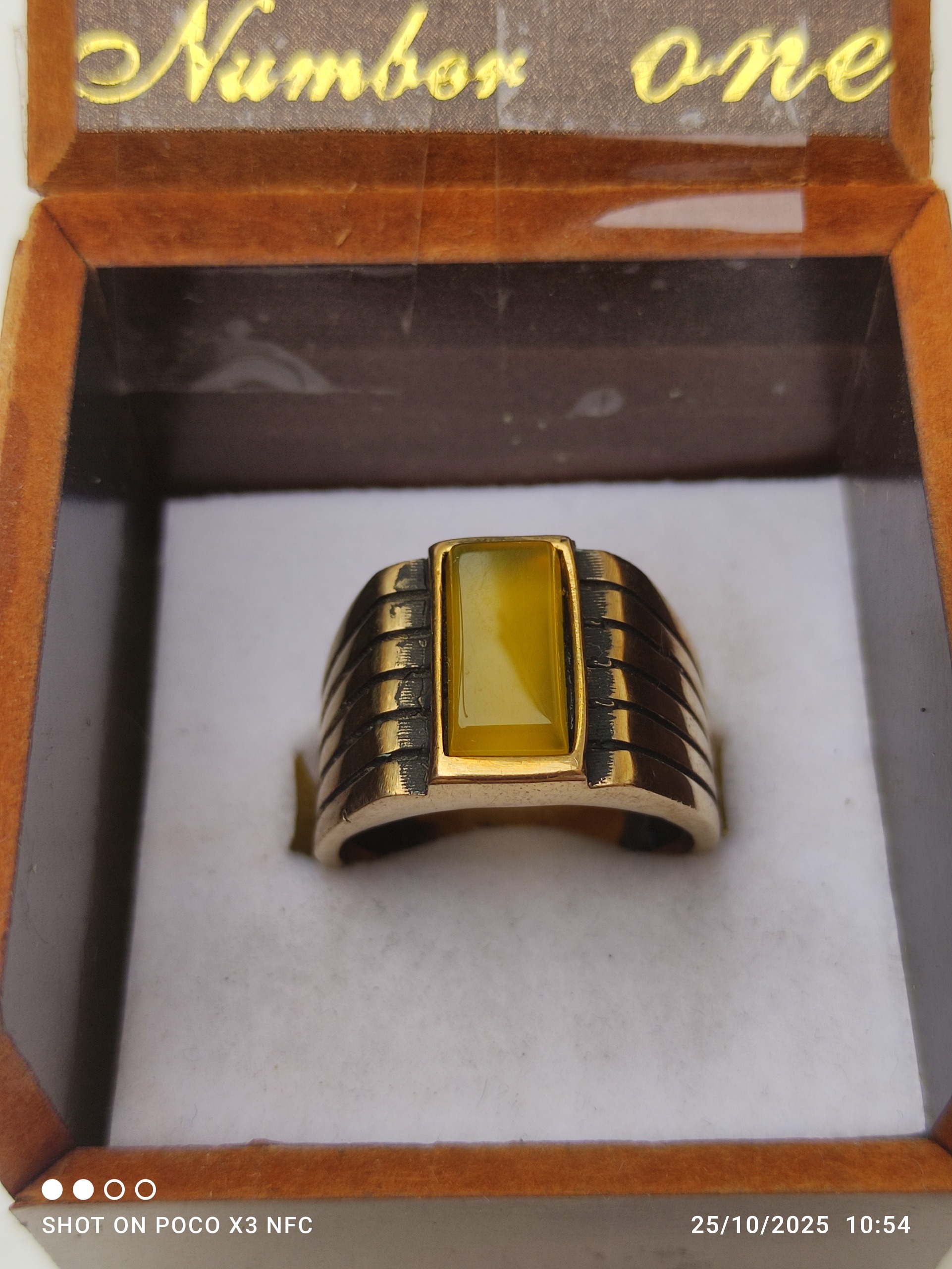 انگشتر استیل مقاومت بسیار بالا در برابر خط و خش با نگین عقیق زرد