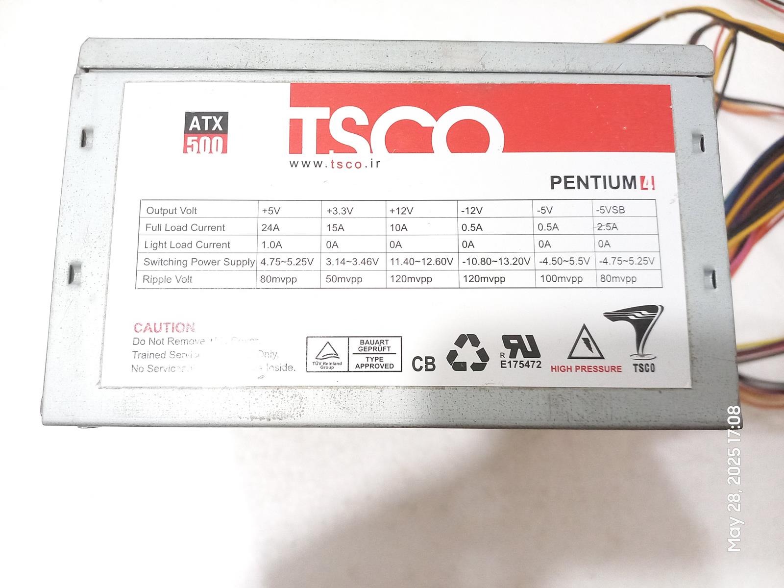 پاور TSCO ATX500 یک پاور 24 پین فن کوچک میباشد که دارای 5 رابط برق IDE و 1 رابط ساتا است.