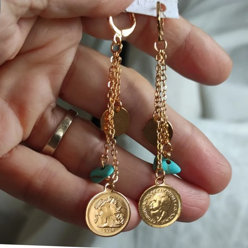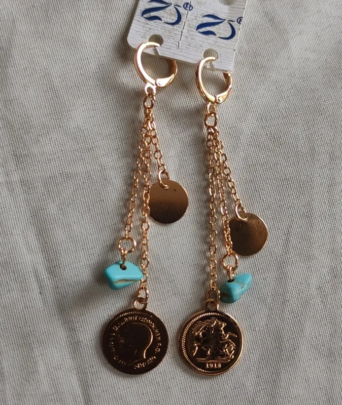 گوشواره آویز سکه،پولک وفیروزه