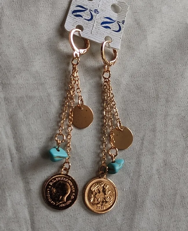 گوشواره آویز سکه،،فیروزه وپولک،یک هدیه بسیاررررر زیبا .فقط یکی مونده،بقیه فروخته شد