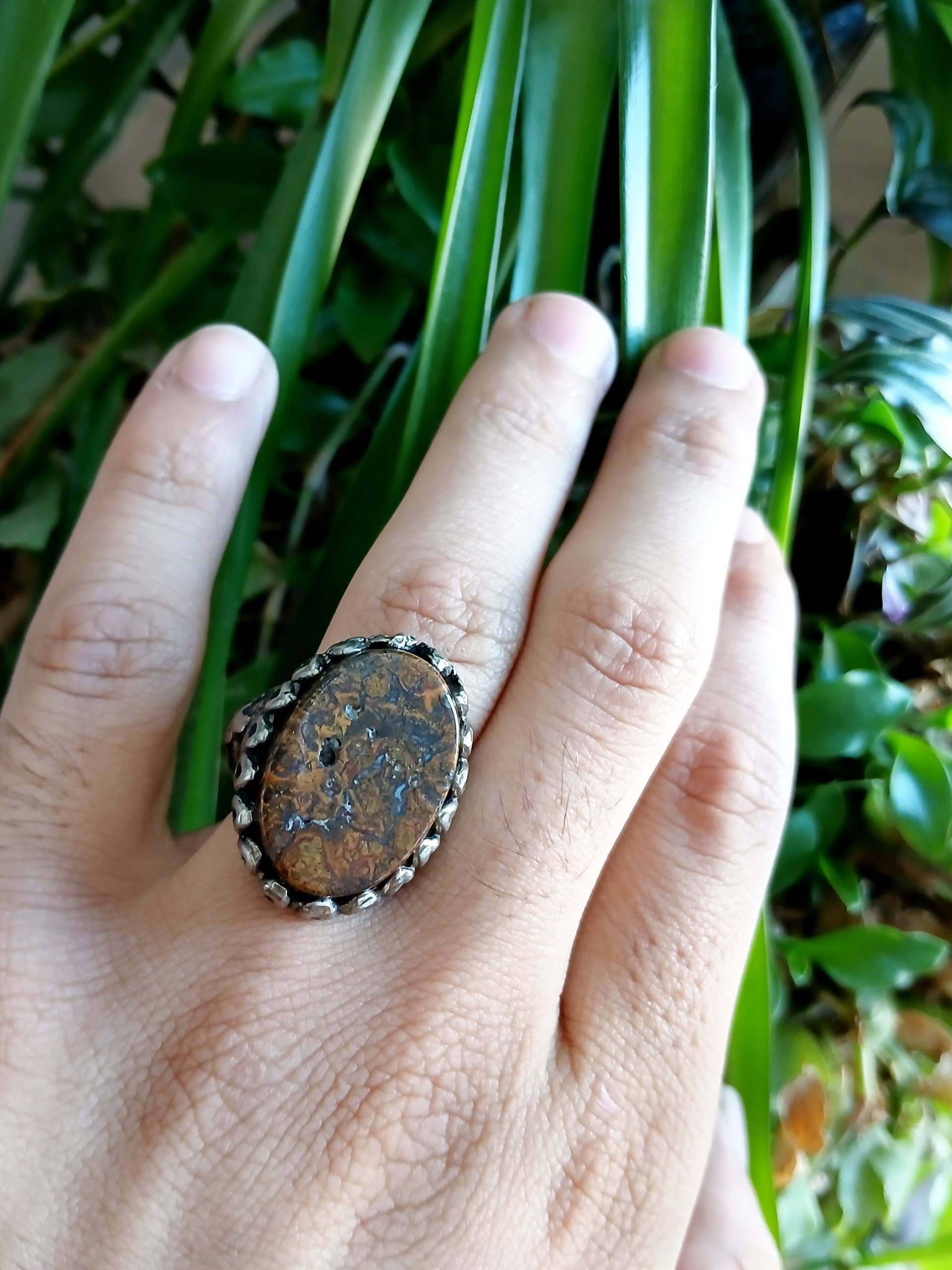 جنس رکاب نقره عیار 74( عیار پایین) آلیاژی ترکیبی. نگین اصل معدنی