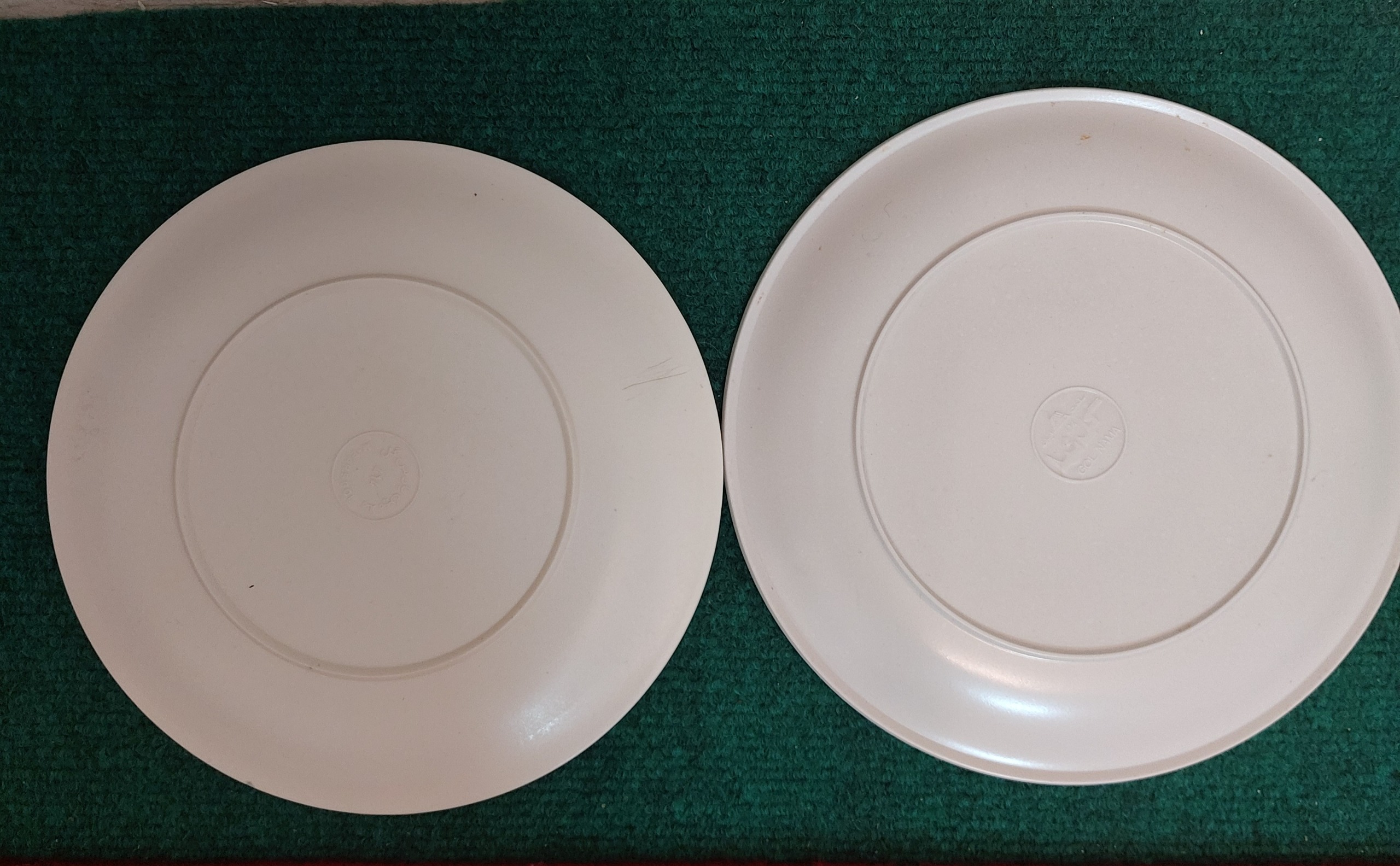 2 عدد بشقاب پلو خوری ملامین با هم فروخته میشوند 420 هزار تومان . بدون ترک و سوختگی . روی سطح  هردو بشقاب بدون خط خش چاقو میباشد. فقط پشت یکی بشقاب ها چند تا خط چاقو کوچک افتاده