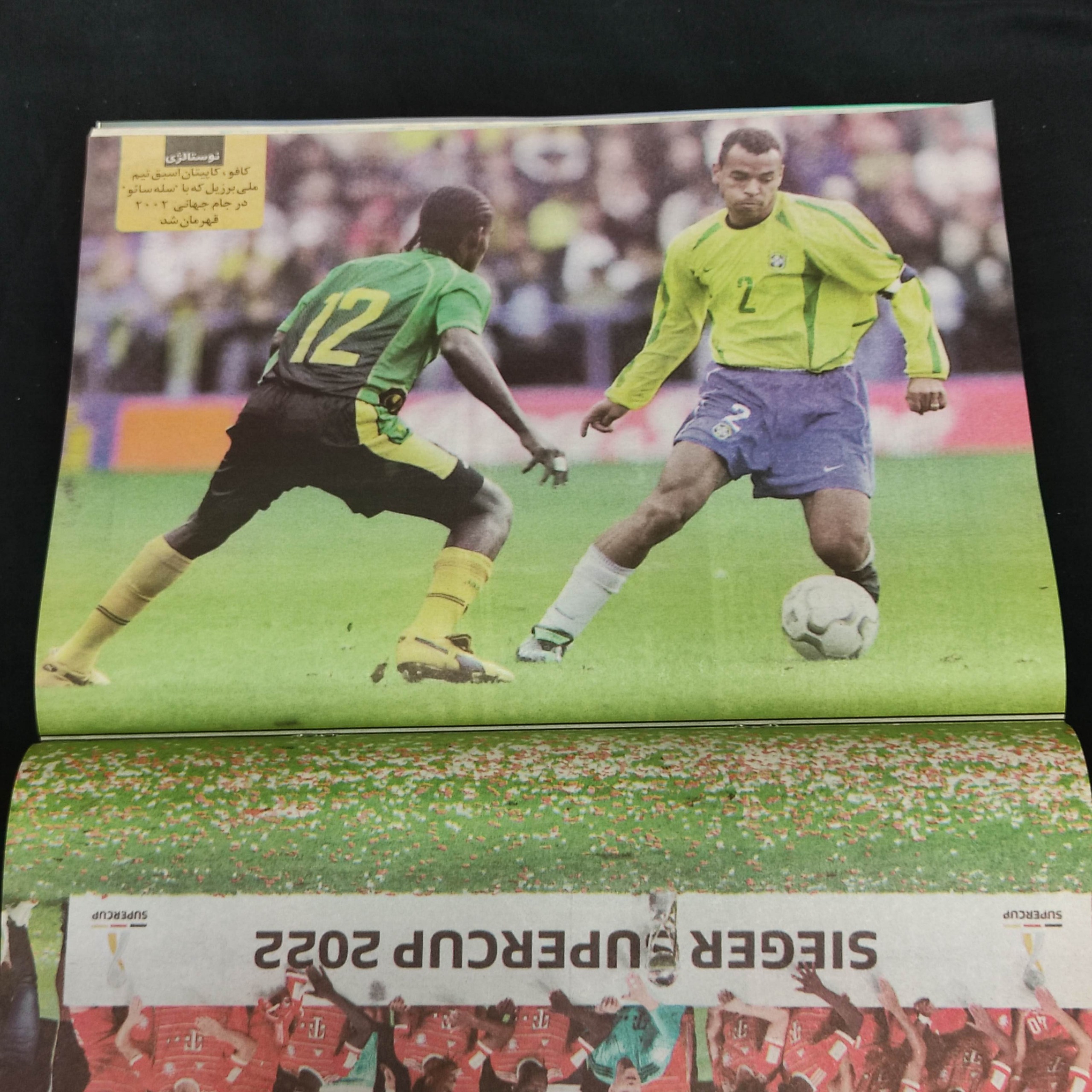 پوستر تک صفحه ای رئال مادرید قهرمان سوپرجام اروپا، بایرن مونیخ، دیبالا و کافو در جام جهانی 2002