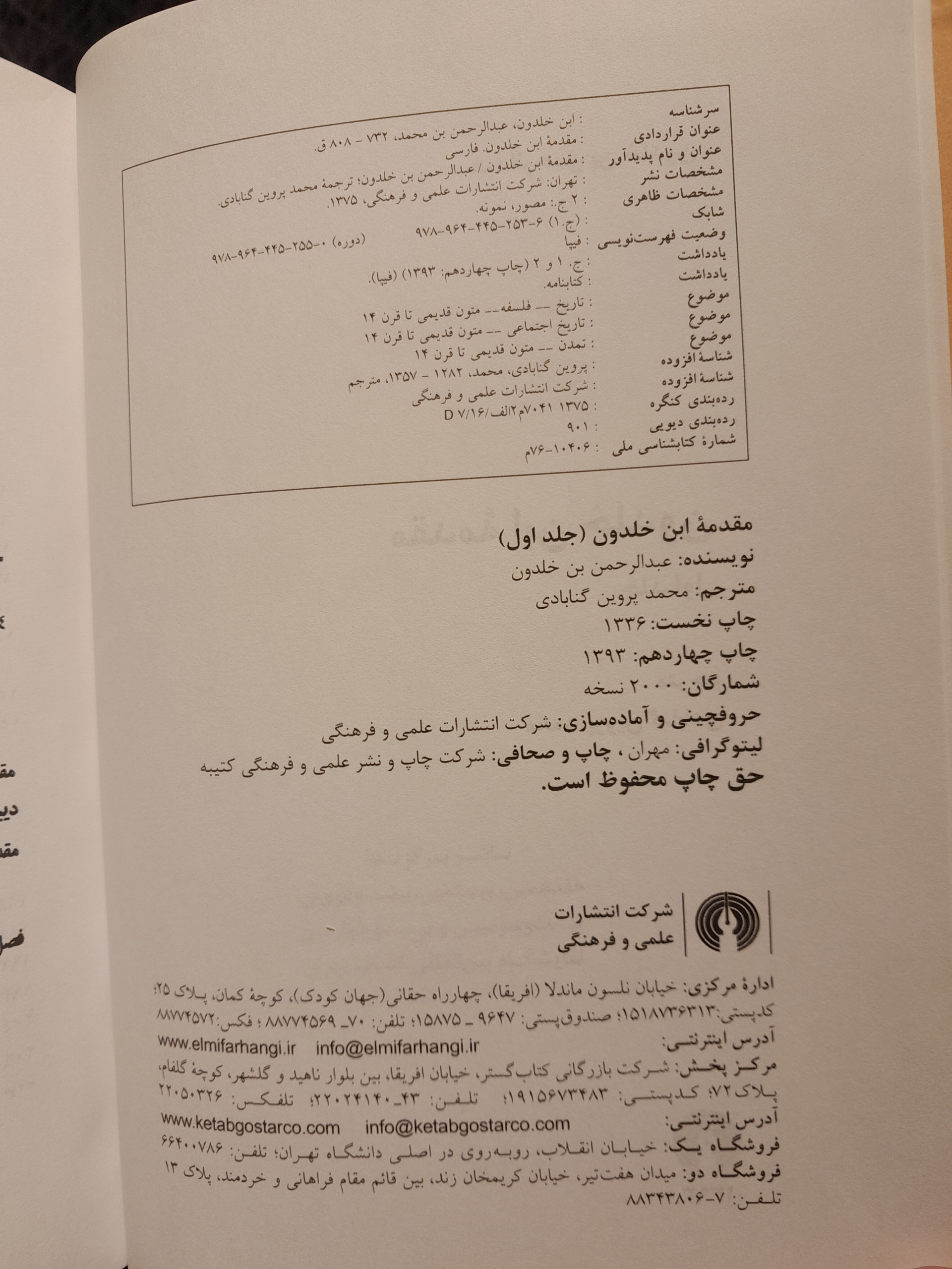 نام کتاب:          مقدمه ابن خلدون  (دوجلدی)
