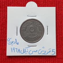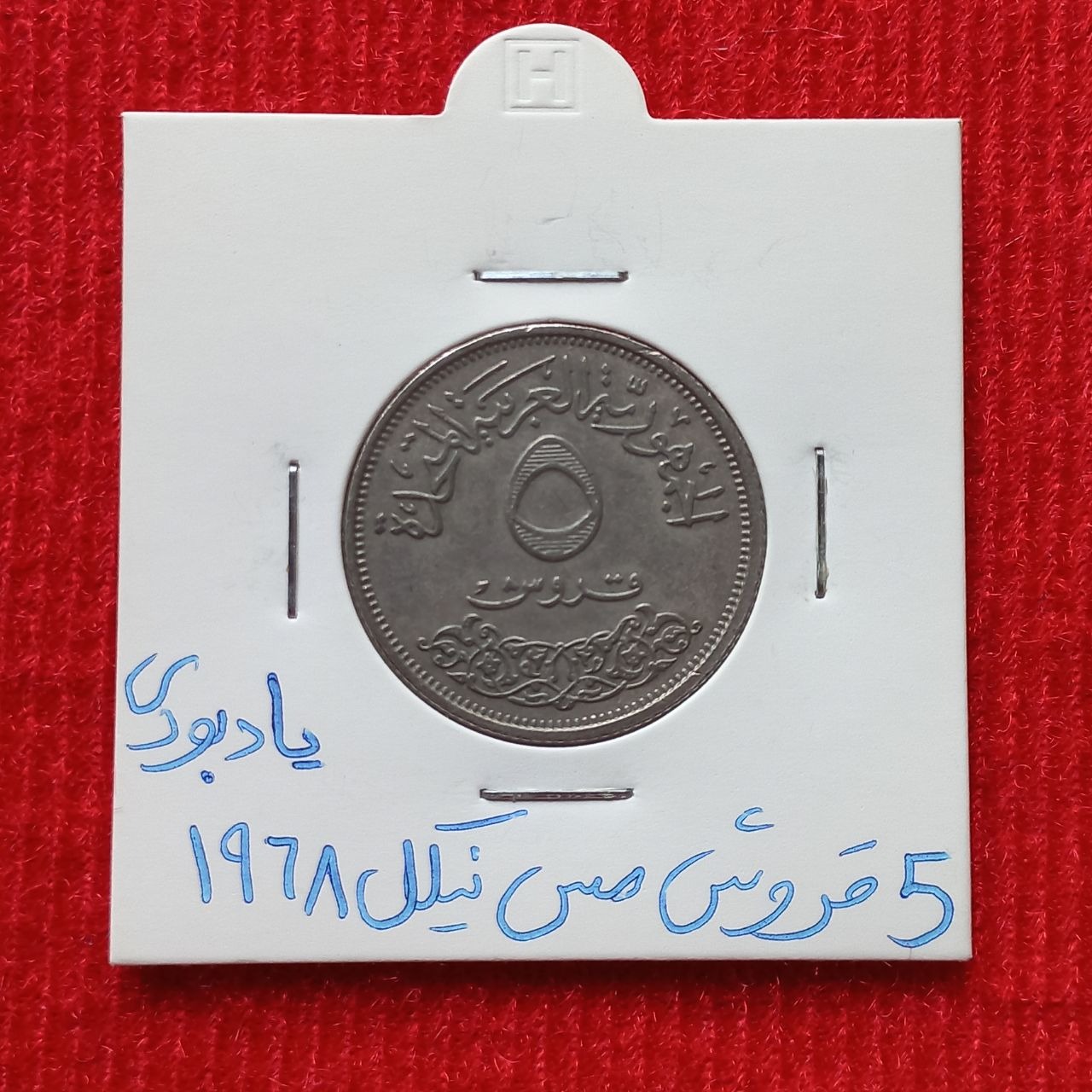 آیتم 16 - 839 _ سکه   5  قروش یادبودی 1968 جمهوری عربی متحده (مصر)  در زمان جمال عبدالناصر ، در حد بانکی ، کمیاب  قیمت   500  تومان.