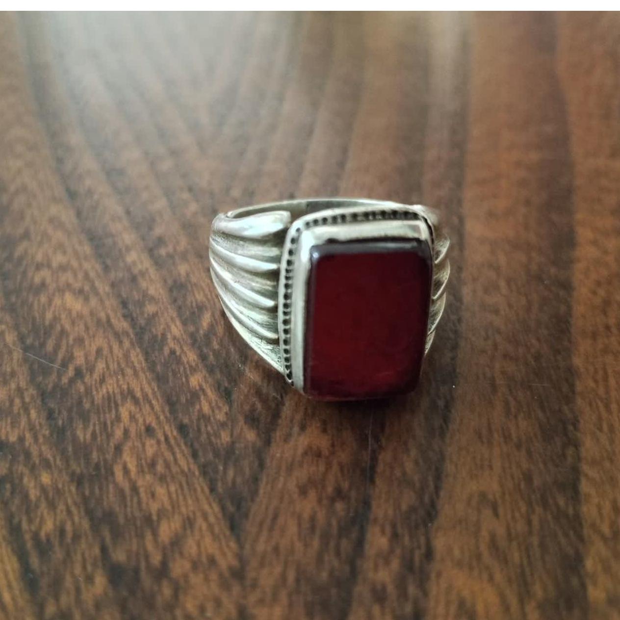 انگشتر نقره 925 با سنگ یاقوت سرخ با نوشته عتیق الرضا