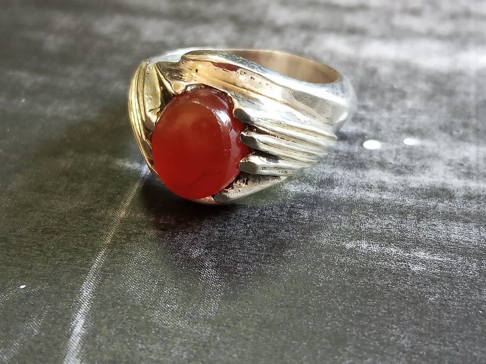 انگشتر نقره 925 با سنگ عقیق یمنی با مهر حسن