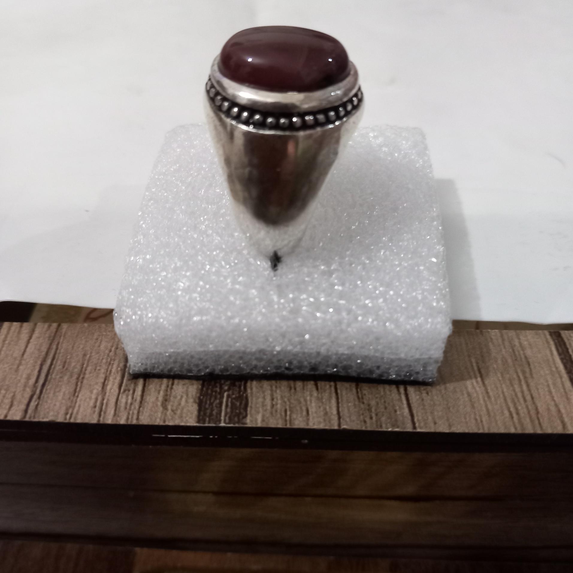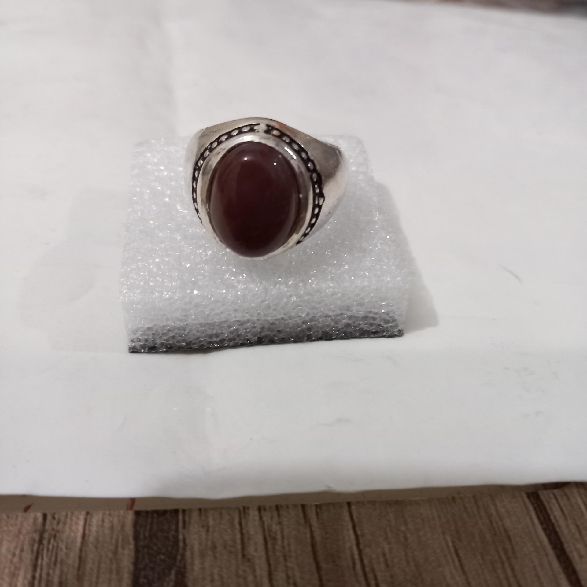 رنگ سنگ قهوهای پررنگ است انگشتر قشنگی است