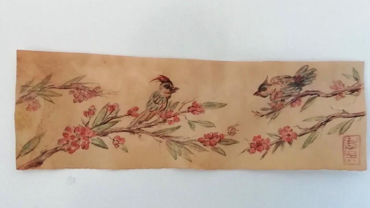 نقاشی ژاپنی مینیاتوری ظریف گل و مرغ