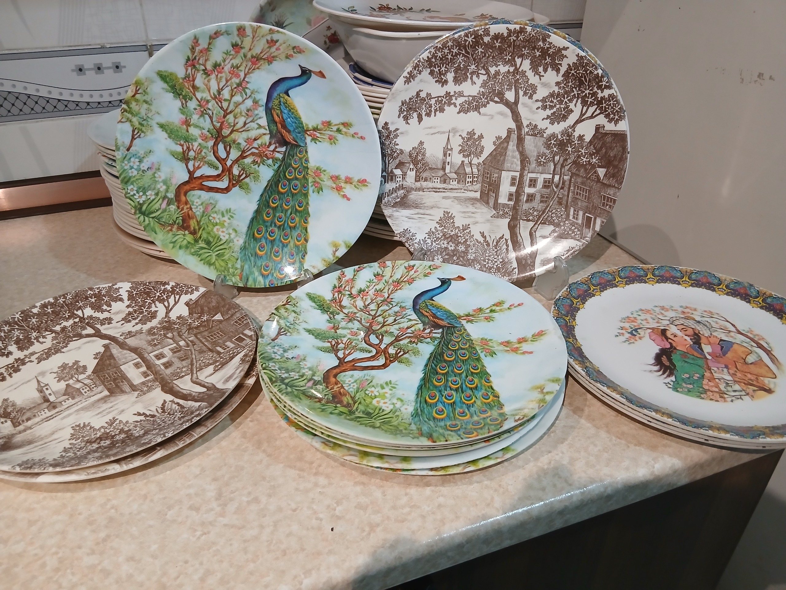 بشقاب کلبه یا منظره قهوه ای 3 عدد