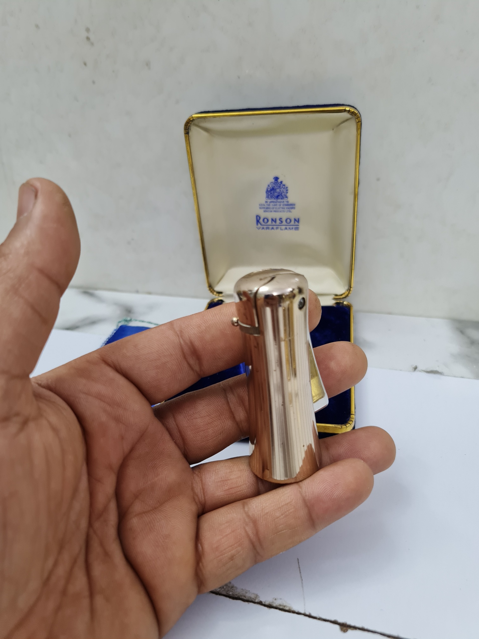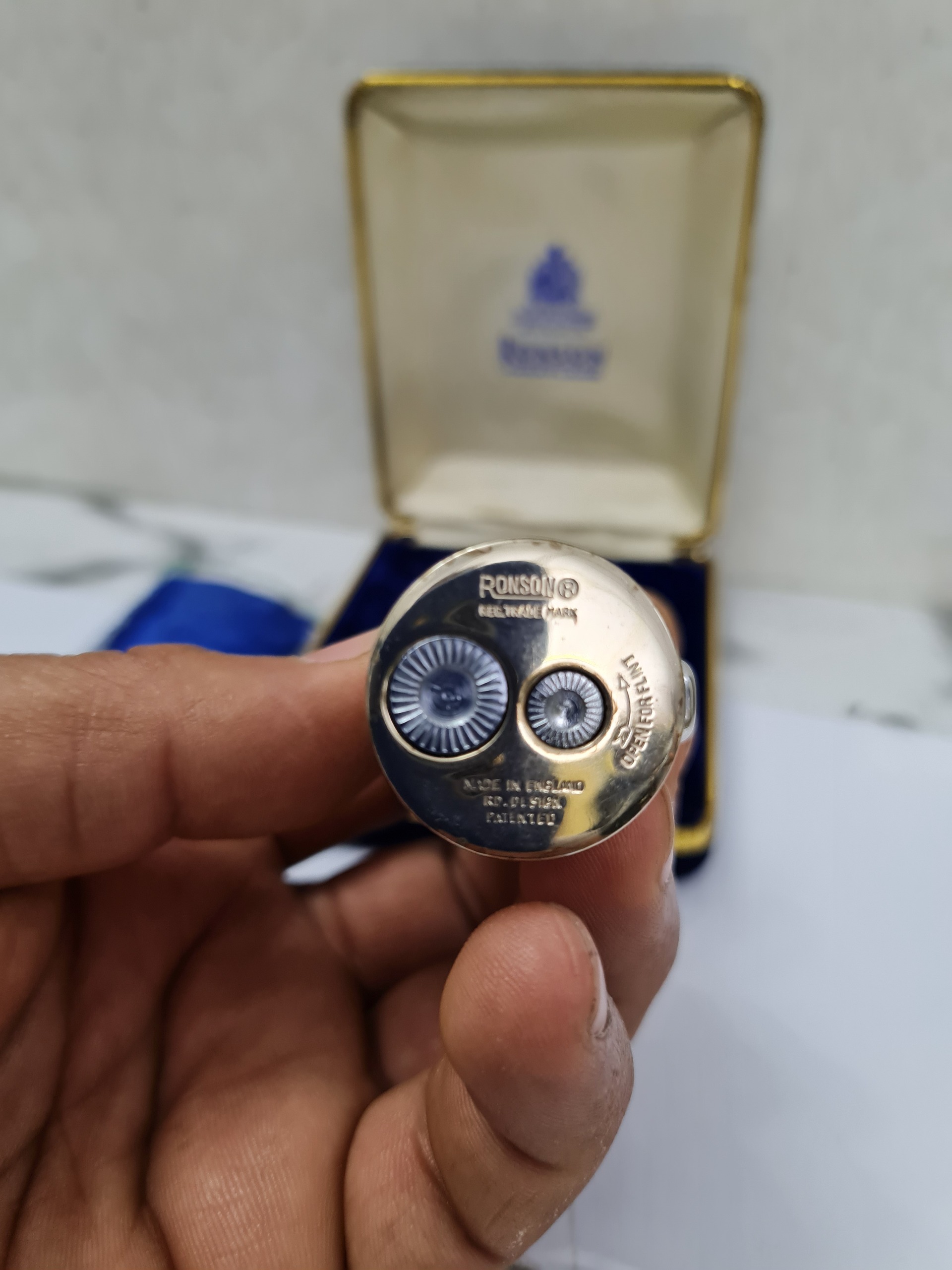 فندک رونسون درحد آک همراه کاور و جعبه فابریکش چخماق سالم ولی نتونستم بهش گاز بزنم و تست کنم،در هر صورت به شرط سالم تقدیم نمیشه احتمالا نیازمند تعویض اورنگ داشته باشه