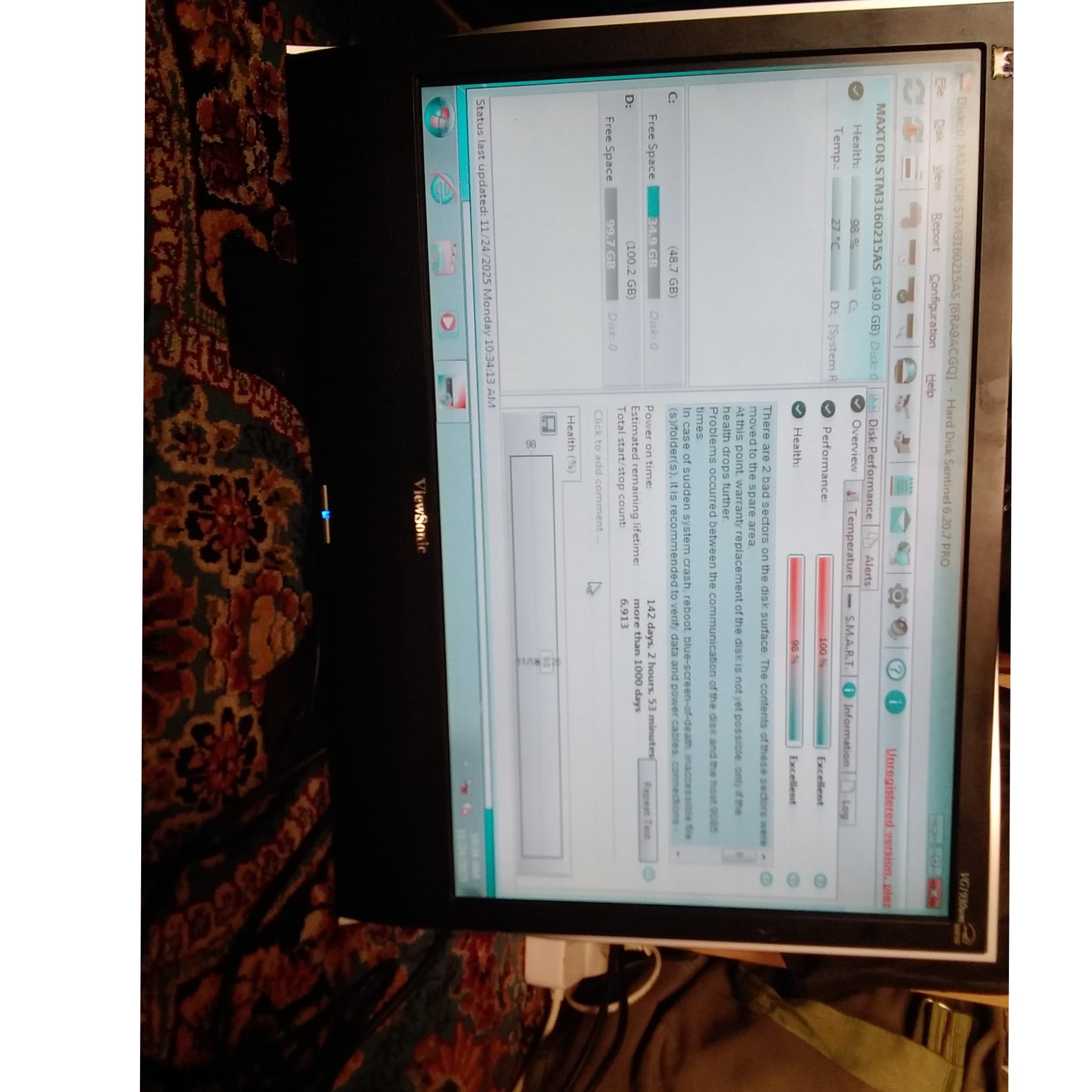 هارد مکستور 160 گیگ سلامت 98