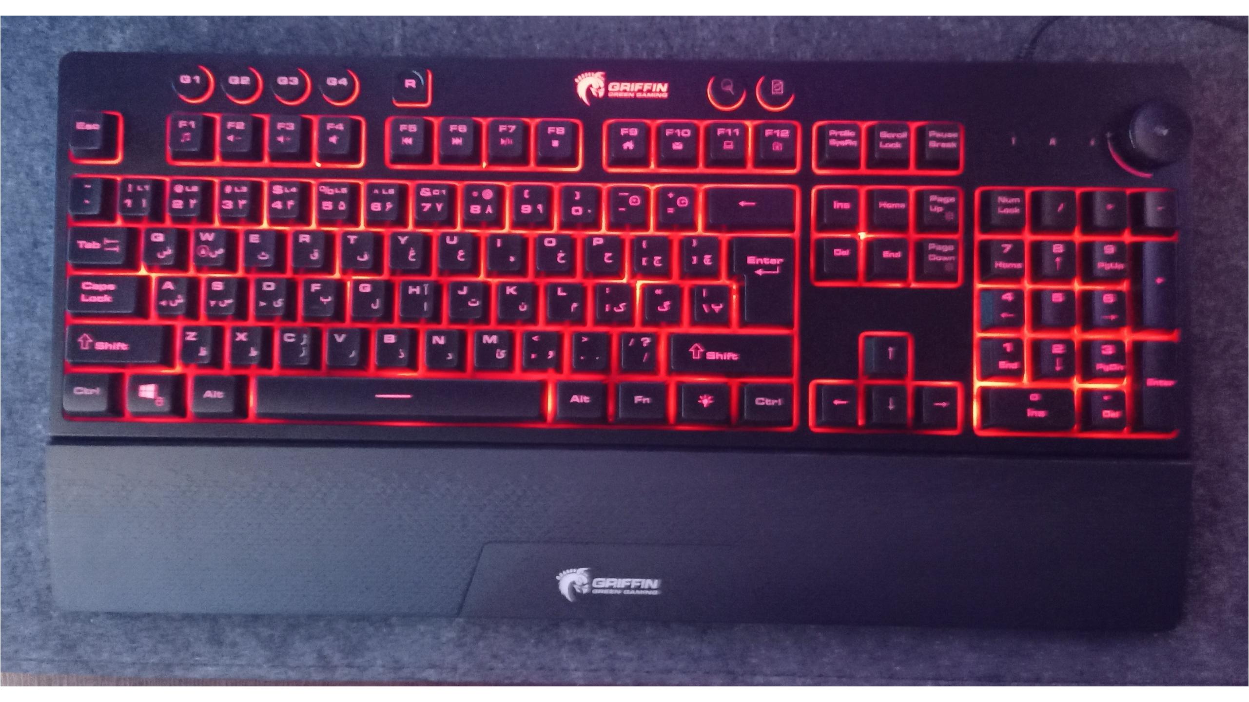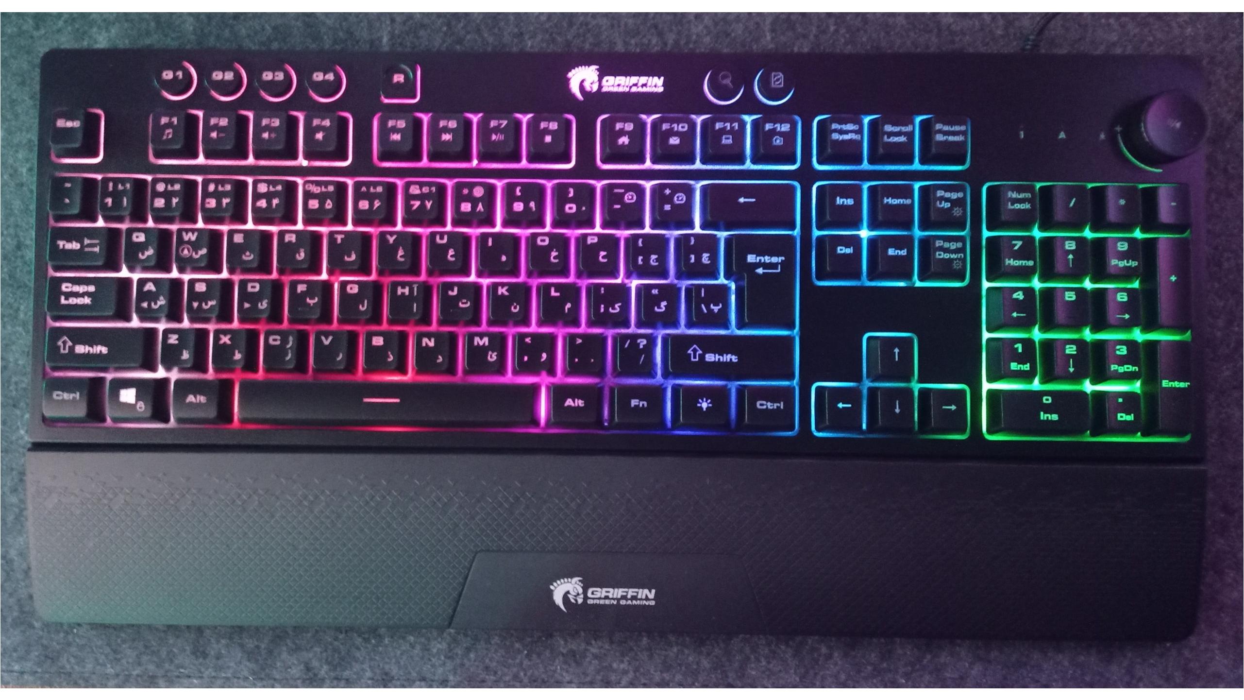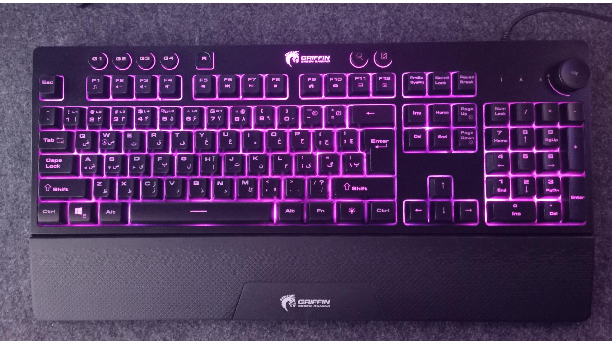 دارای کلید چرخشی ولوم و تکیه گاه مچ دست و کلید ماکرو