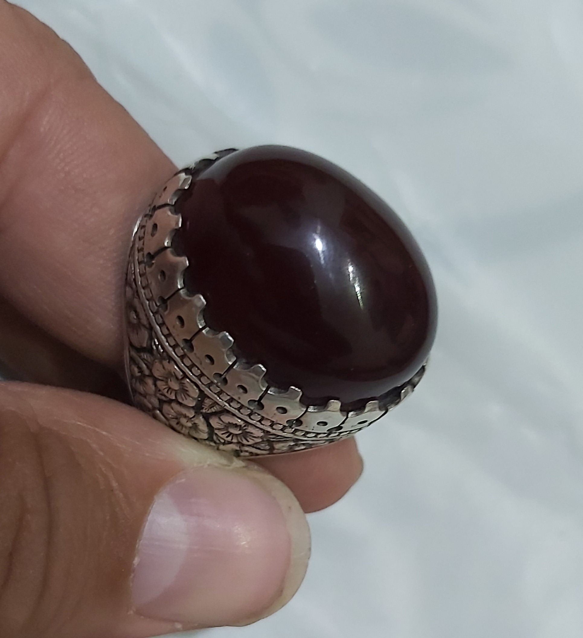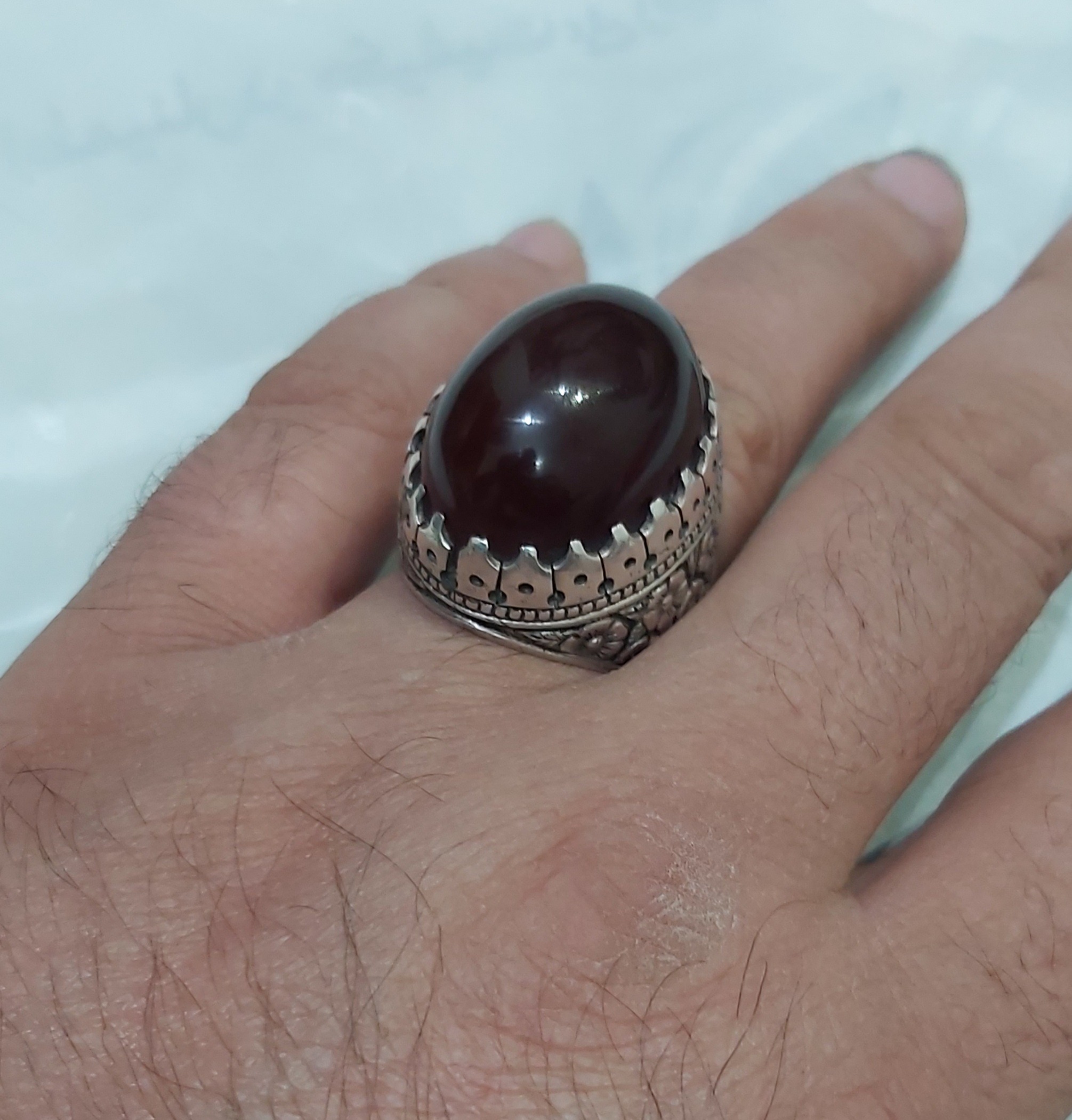 انگشتر نقره 925، دستساز و چشم نواز کار استاد علیار، نگین عقیق یمنی معدنی داره ، وزنشم 23گرم 23صوته یه کار درشت و تو چشم که واقعا ارزنده اس انشالا قسمت هرکسی شد خیر همراهش باشه.
