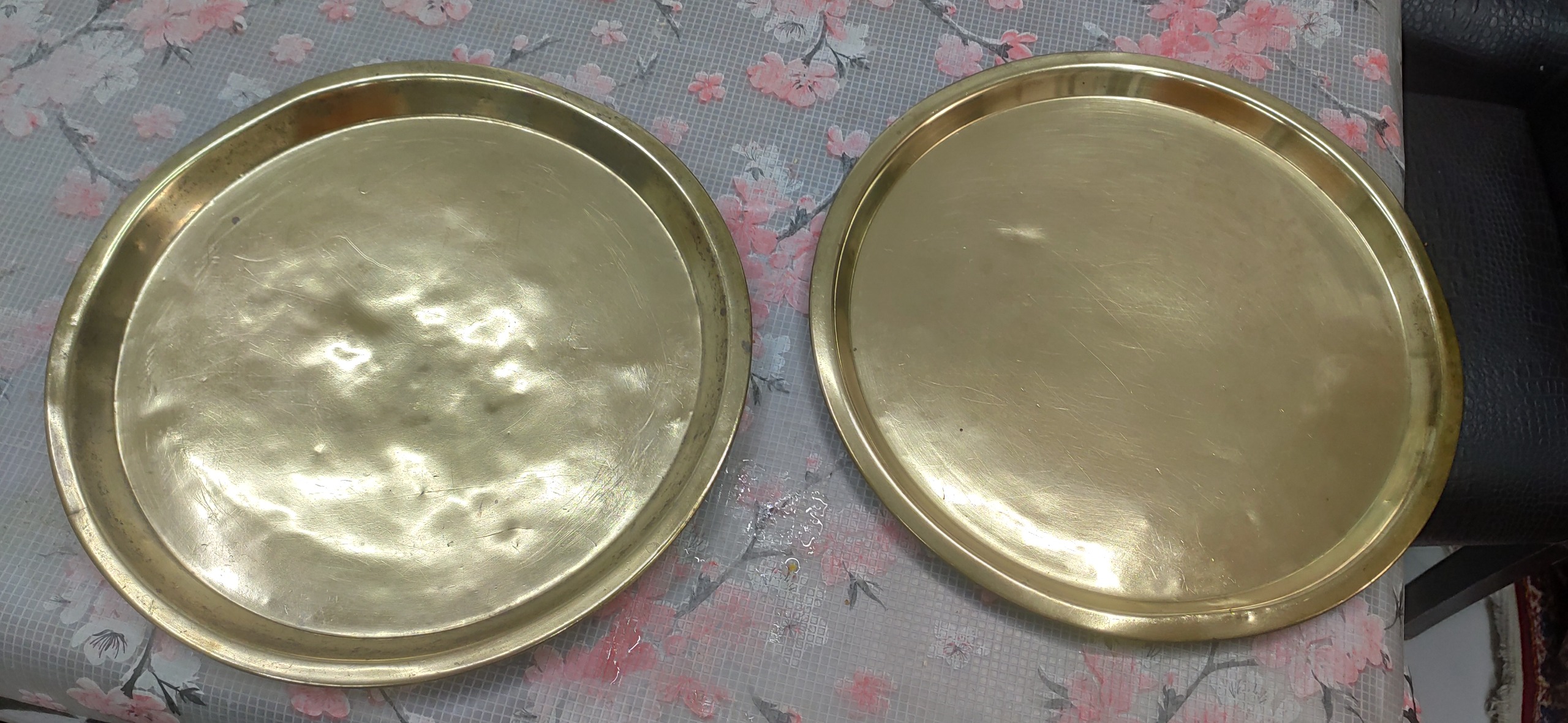 یک جفت سینی زیر سماوری قدیمی برنجی