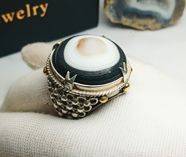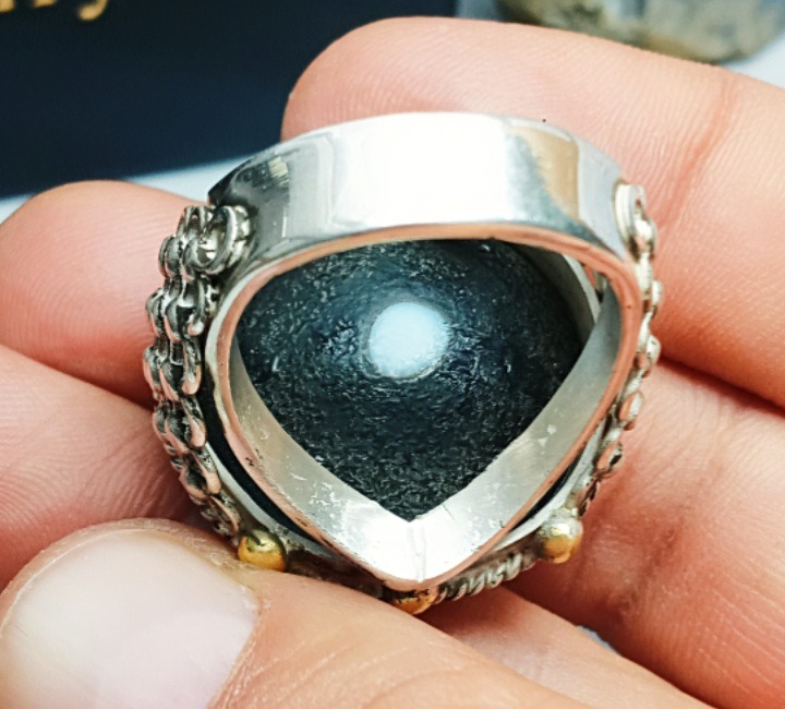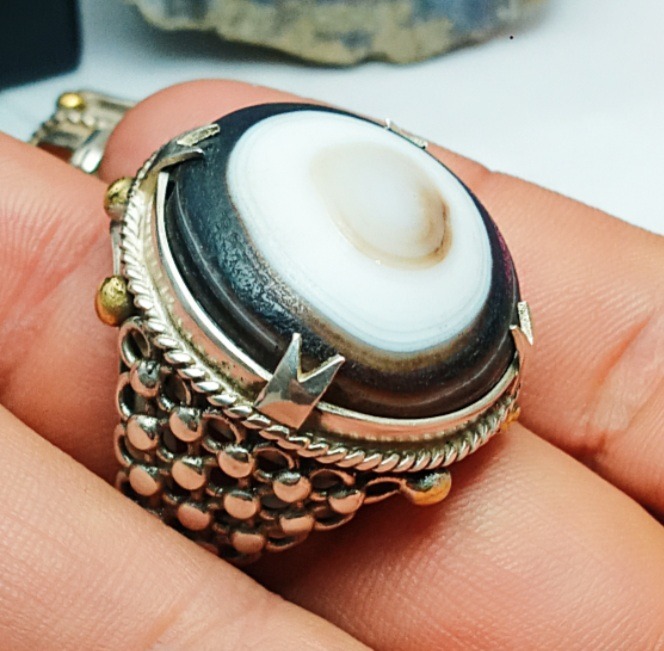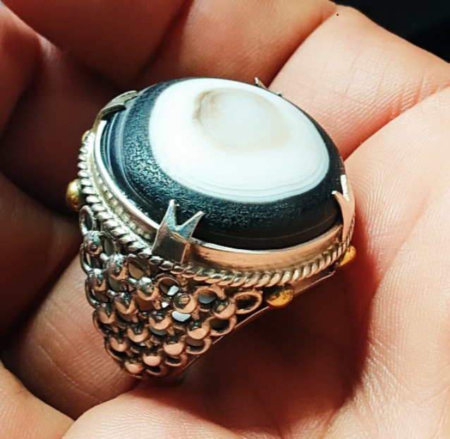 انگشتر جذاب و اصالت دار سه پوست بقرانی اصل و طبیعی سنگ کهنه و سراسر سمبه پشت نگین رو مشاهده کنید اصالتش معلومه