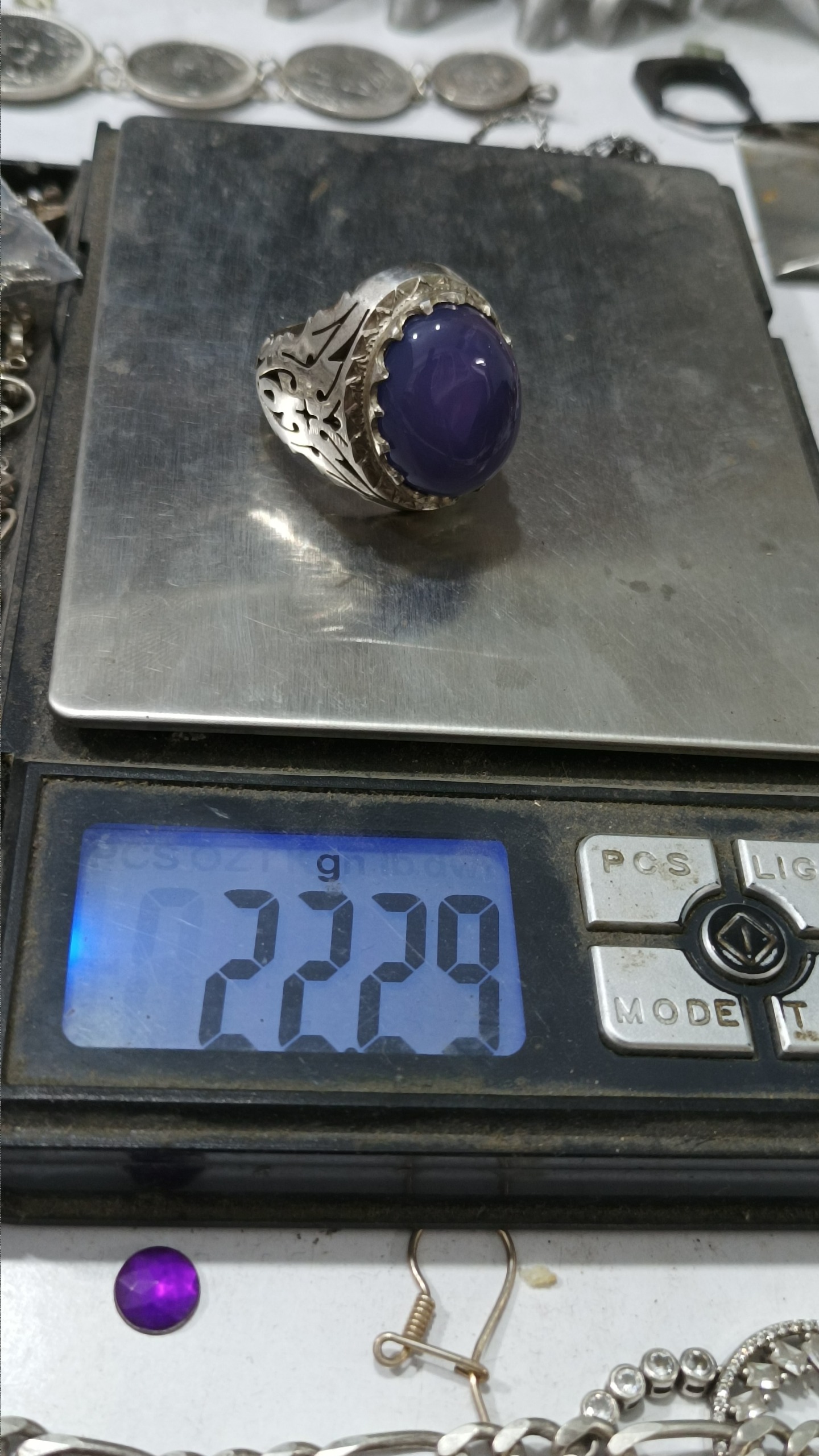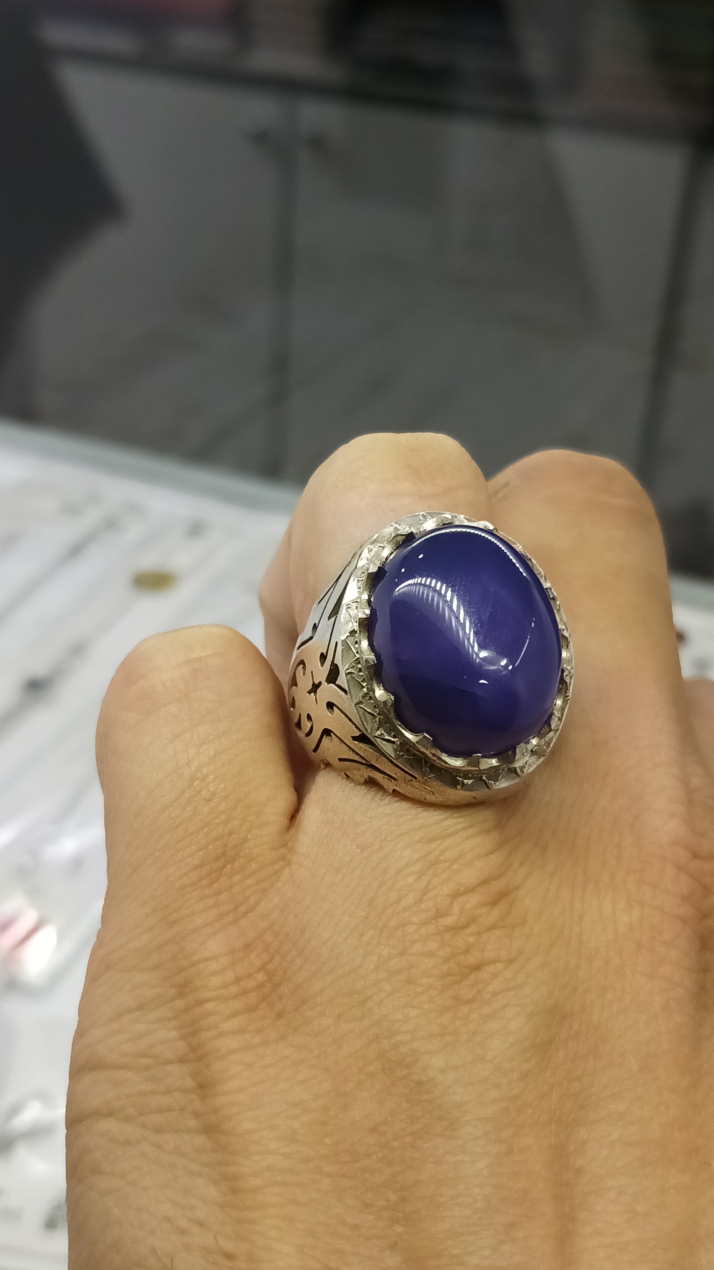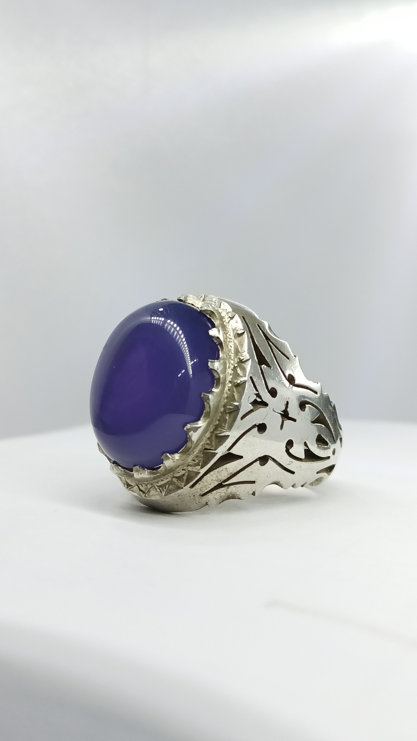 22 گرم انگشتر نقره دستساز عقیق بنفش