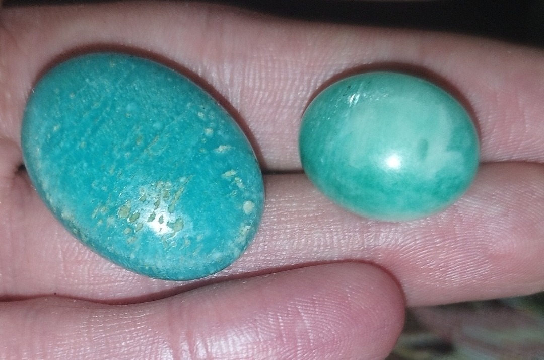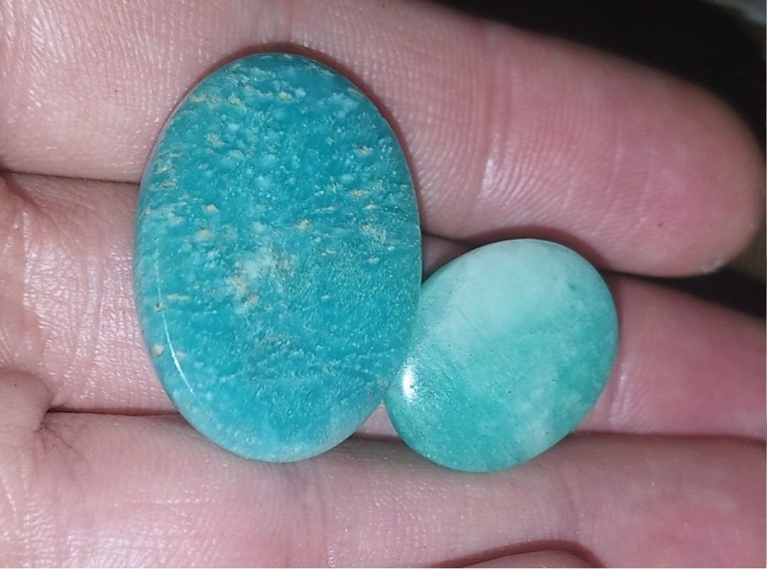 نگین معدنی زیبای 5 گرمی و 8 گرمی معدنی آمازونیت روس. قیمت برای هر دو نگین است.