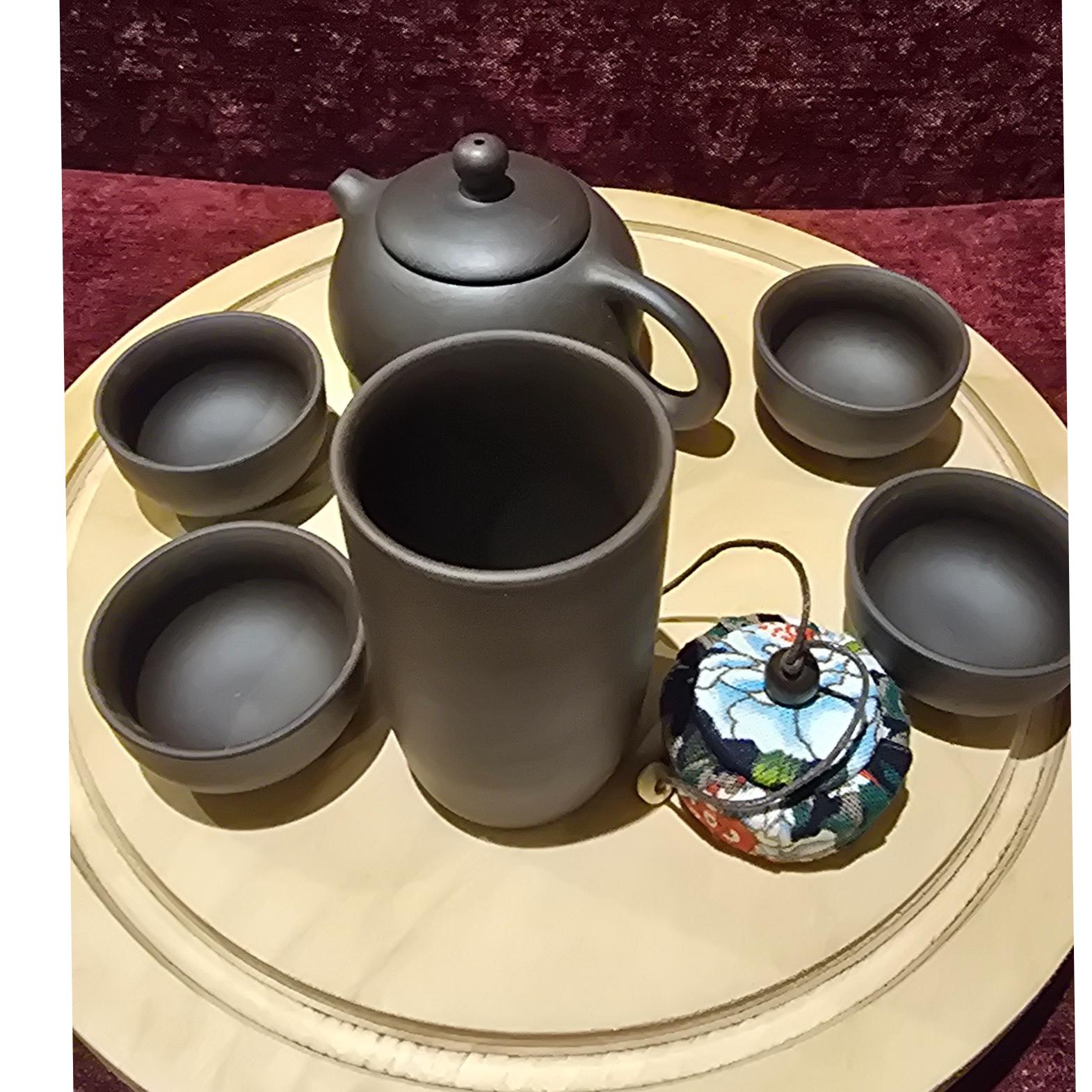 سرویس چایخوری مخصوص و منحصر بفرد چین . خاک مورد استفاده در ساخت این ظروف فقط در بخشی از کشور چین وجود دارد . شامل قوری و چهار عدد پیاله دمنوش و چایدان در دار . کار بسیار خاص کاربردی و کلکسیونی