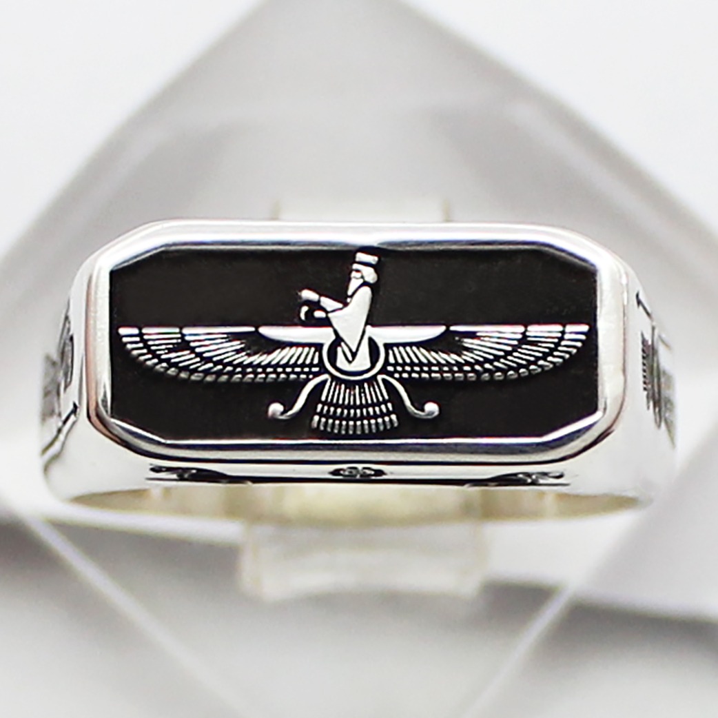 انگشتر نقره هخامنشی ( فروهر ، شیردال )