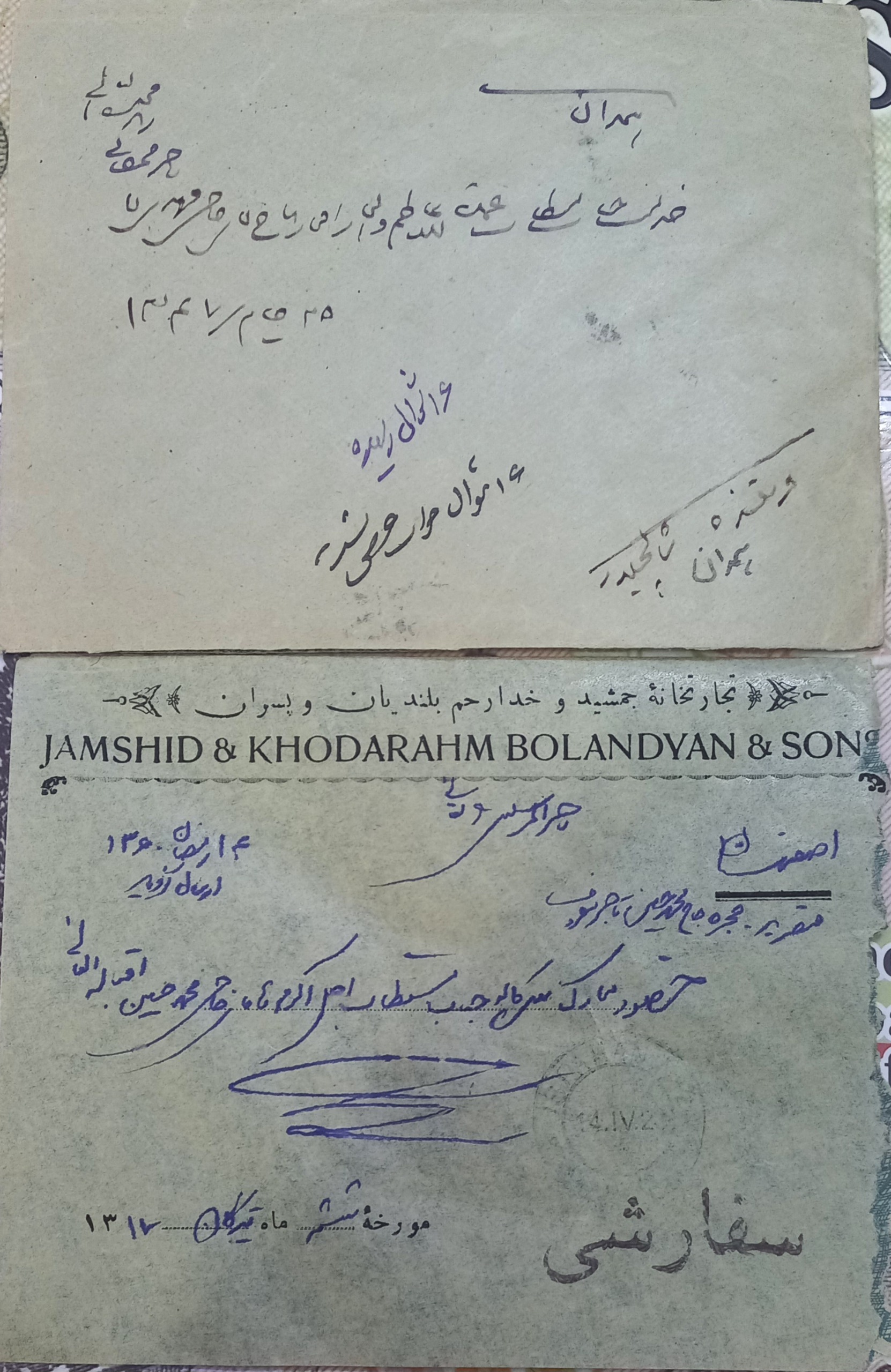 2عددپاکت نامه قدیمی رضا شاهی با تمبرهای کلاهدار رضا شاه