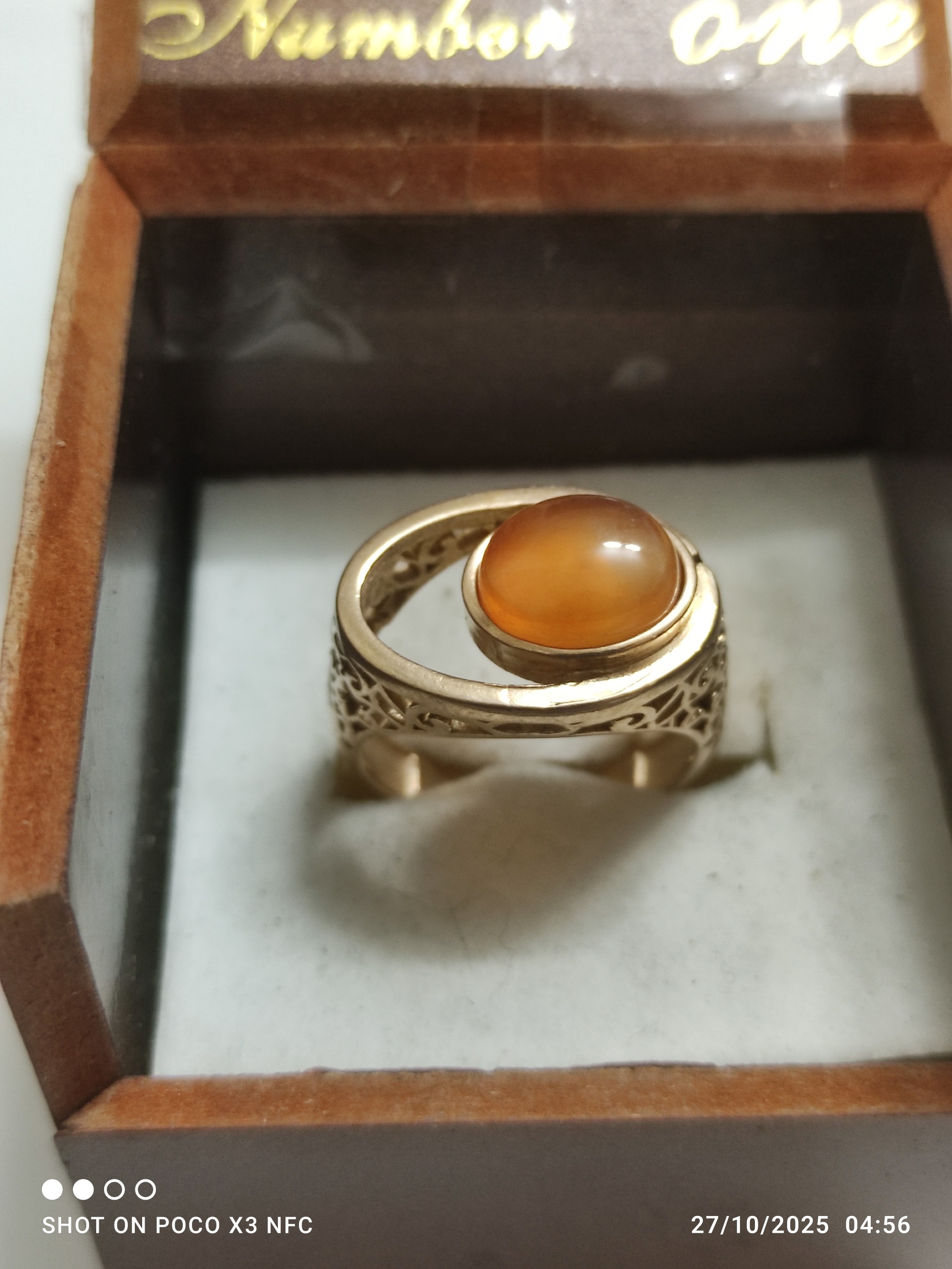 انگشتر بسیار زیبای رز گلد با نگین عقیق بمن که خواص افزایش آرامش و رفع اضطراب و تقویت اعتماد به نفس،دفع انرژی منفی ایجاد تعادل روحی تقویت گردش خون کمک به درمان بیماریهای پوستی و همینطور در جایگاه مذهبی هم از آن نقل شده است.