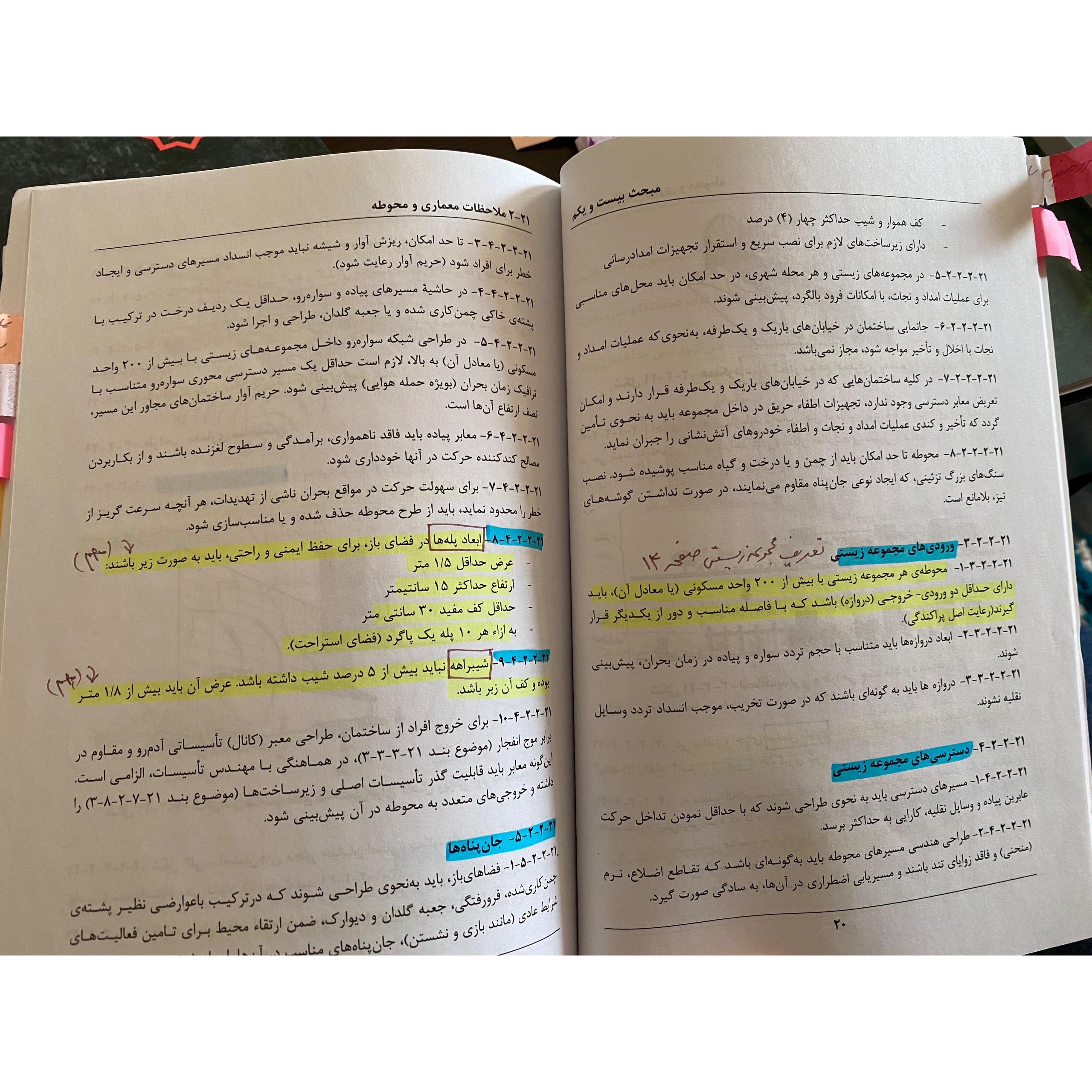 دقت شود که کتابها ( به جز مبحث 6 که علایم و تابلوهاست و مبحث 18 که هر دومبحث حفظی و ساده هستند ) همگی هایلایت شده و لیبل خورده ، قسمت های مهم برای امتحان نظام مهندسی، بر اساس کلاس های آمادگی آزمون نظام مهندسی مجتمع مهندسین البرز با استادی آقای دکتر محمد حاجی محمدی( می توانید درباره کیفیت آموزش ها و میزان قبولی شرکت کنندگان کلاس های ایشون تحقیق کنید) . مناسب برای افرادی که فرصت رفتن به کلاس هارو ندارند و می خواهند فقط قسمت های مهم و آزمونی رو مطالعه کنند، بسیار بسیار کاربردی و عالی، به همراه یک کتاب تست طبقه بندی شده برای آزمون های ورود به حرفه مهندسی مخصوص مهندسین معمار، و یه جزوه کلید واژه که من خودم البته از ان استفاده نکردم و نمی دانم برای این کتابها با این سال چاپ هست یا خیر که اون رو خودتون چک کنید و مطابقت دهید، متاسفانه امکان فرستادن تعداد محدودی عکس هست وگرنه از صفحات و نکات هایلایت و بولد شده بیشتر عکس میگذاشتم.