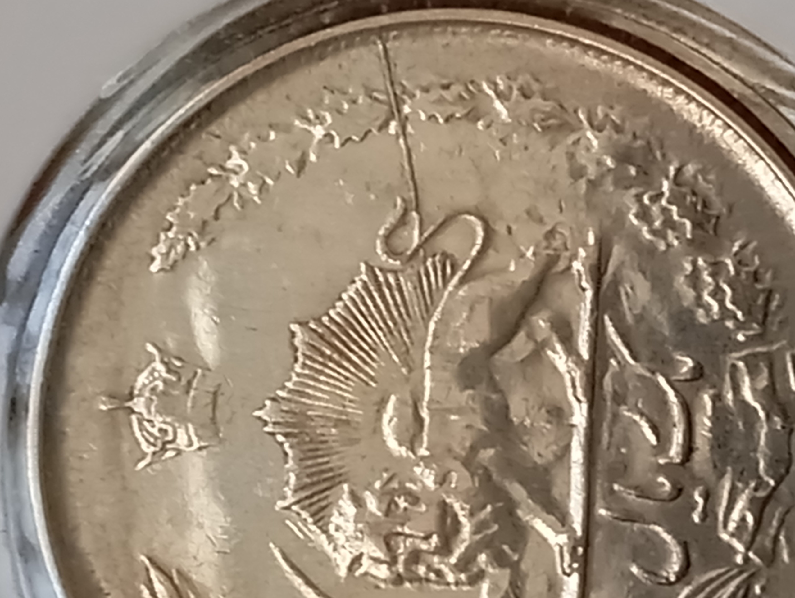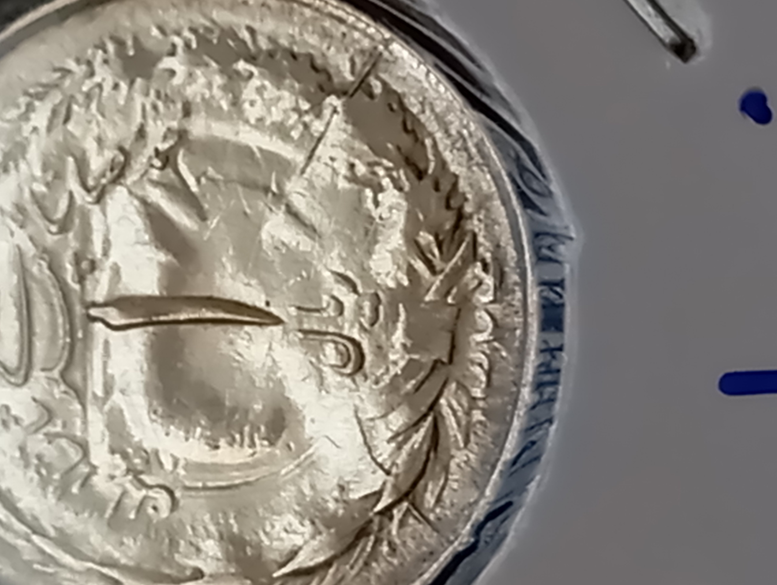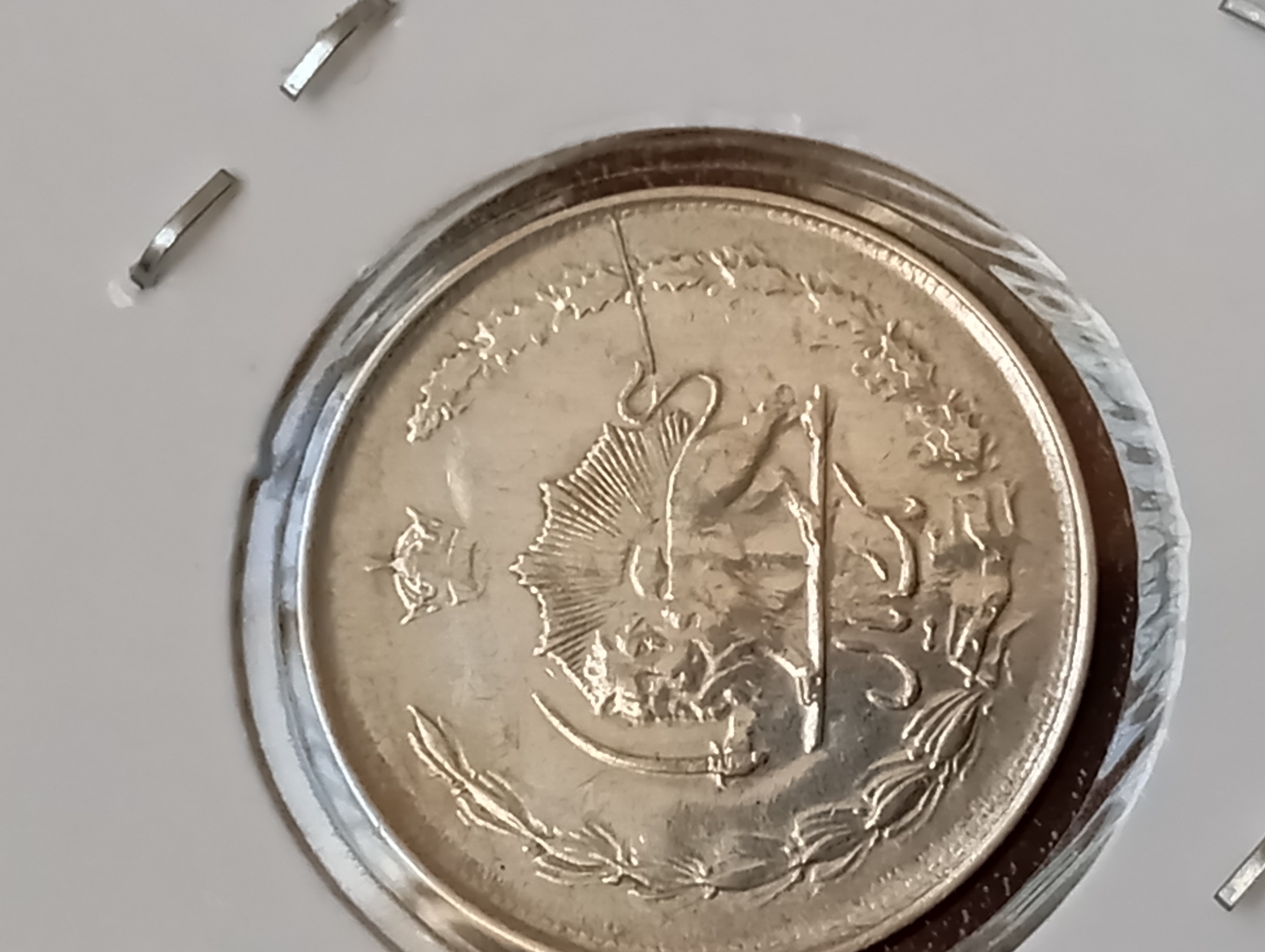 سکه یک ریال نفره 1324 و دارای ارور ترک قالب پشت روی سکه است.