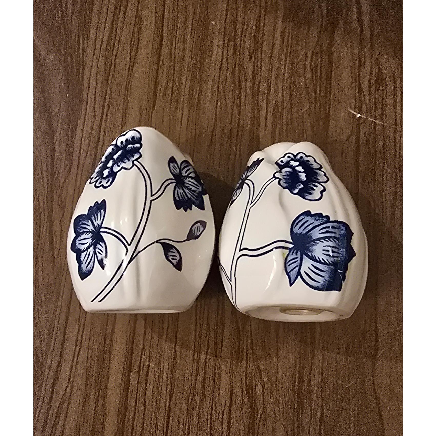 جفت نمکدان و فلفل دان قلم آبی طرح ساخت شبیه غنچه گل ، آنتیک و کلکسیونی و کاربردی  .ارتفاع 7 سانت