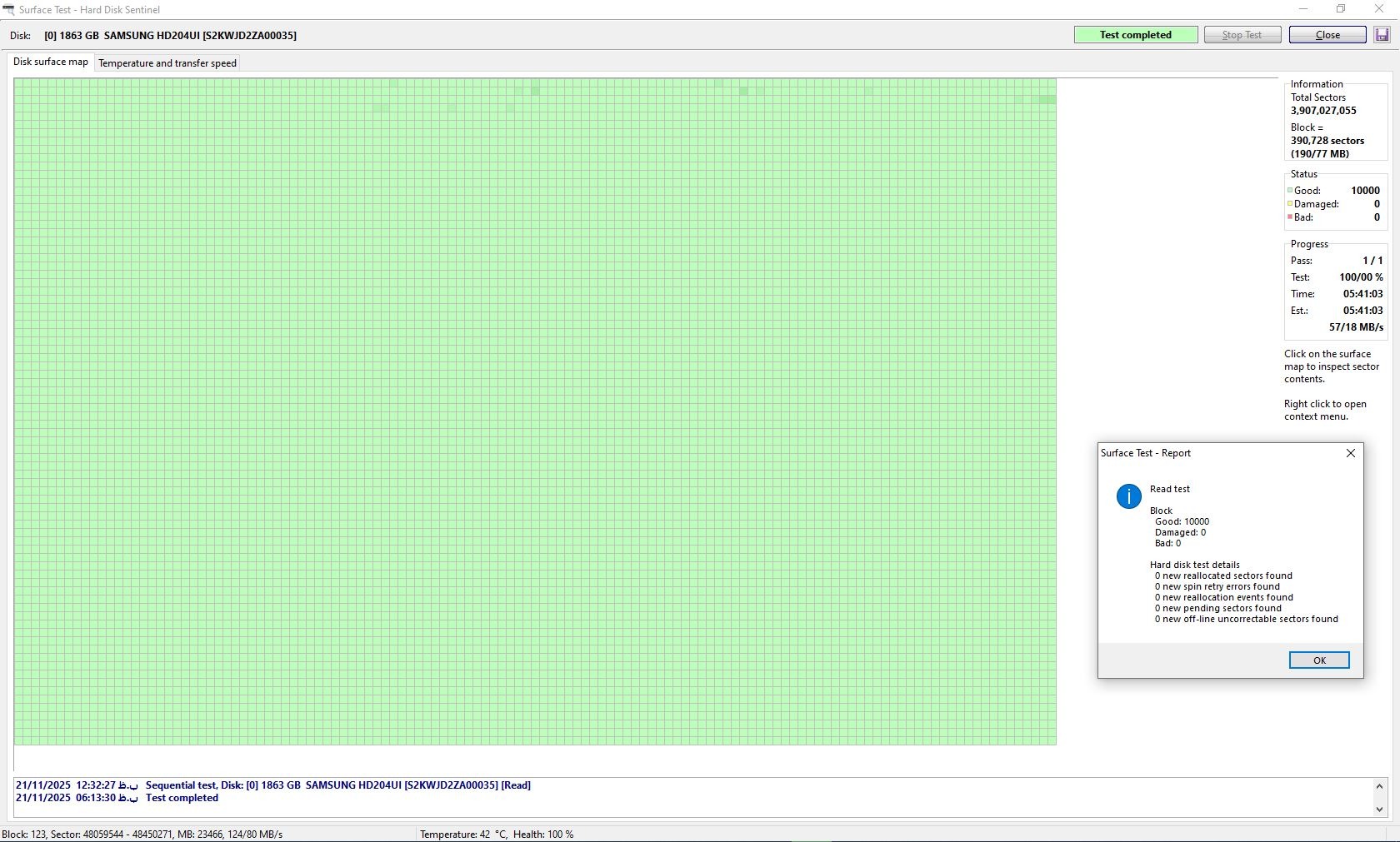 هارد دو ترا بایت برند سامسونگ کاملا سالم وضعیت 100 درصد هست تست ها انجام شده عکس هم ضمیمه هست با HDDREG هم بررسی شد و وضعیت سفید هستش . قبل از ارسال تست نهایی هم میشه .