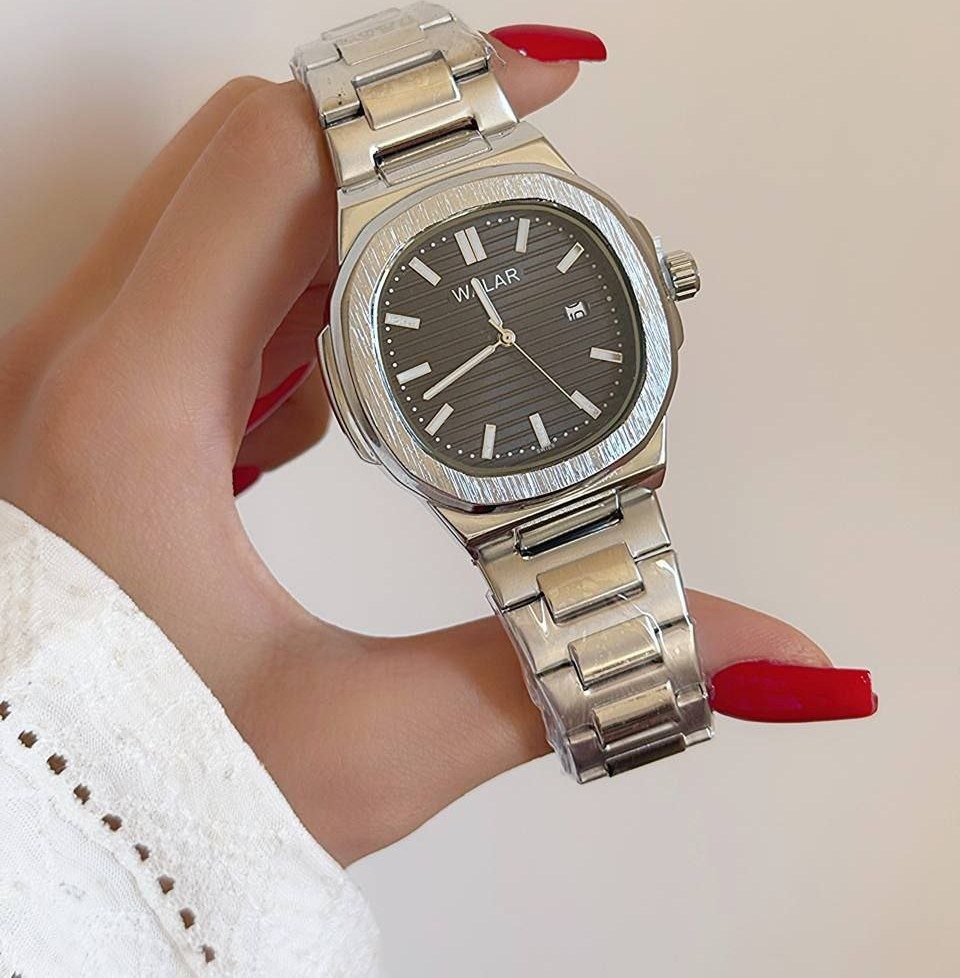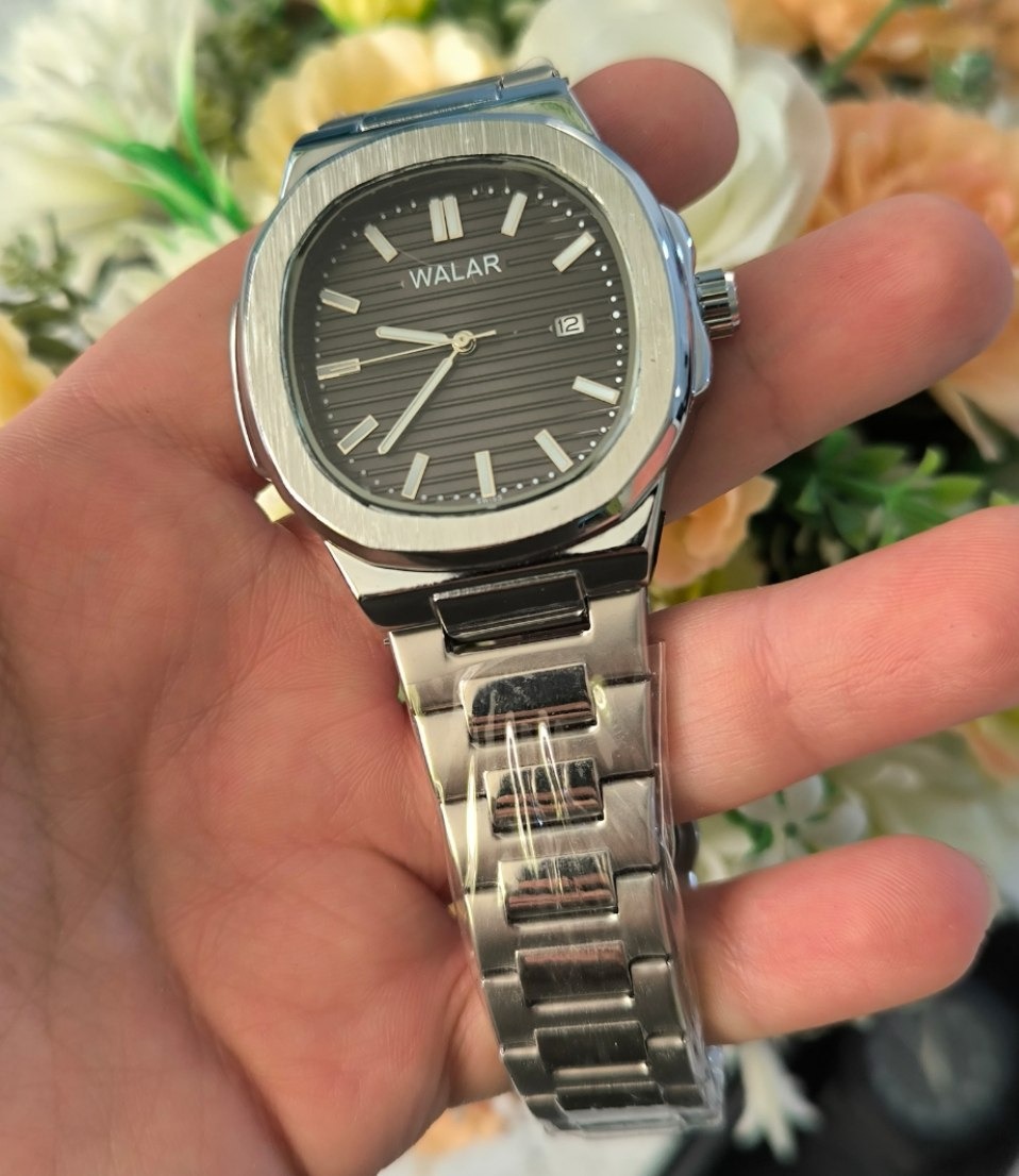 ساعت مچی مردانه پتک فیلیپ از برند والار WALAR انتخابی لوکس و اصیل برای آقایان خوشسلیقه است این ساعت با برند شرکتی ارجینال و تضمین رنگ و کیفیت عرضه میشود بند استیل رنگ ثابت و بند توپور سنگین بینظیر جلوهای خاص و ماندگار دارد قفل پروانهای مخفی راحتی استفاده را افزایش میدهد و فرم صفحه چند ضلعی همراه با تقویم دار بودن طراحی مدرن و کاربردی را کامل میکند این ساعت ضد آب بوده و برای استفاده روزانه و رسمی مناسب است خرید این محصول از فروشگاه اینترنتی روبی مد تجربهای مطمئن و ارزشمند خواهد بود.