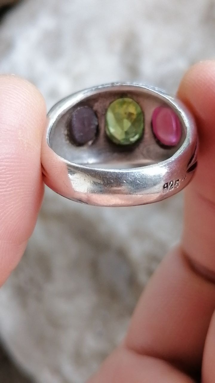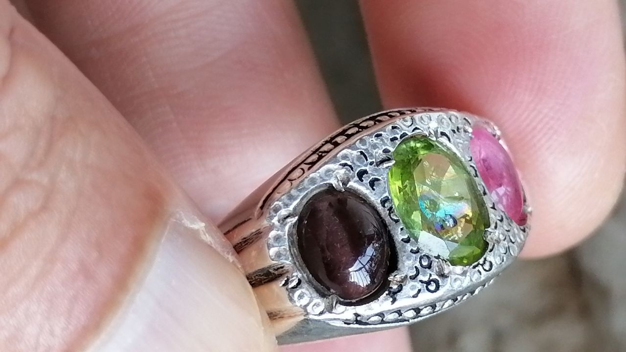انگشتر نقره جواهری چن نگینه اصل معدنی زبرجد توش حالت هفت رنگ داره اینا مال هرکیمر هستندحتی کوارتز اونجا شبیه الماسه ویاقوت و چشم گربه کار دستساز وزیبا وزن10.82گرم سایز62تا63 رکاب محکم کار خوشکل قیمت 4تومن