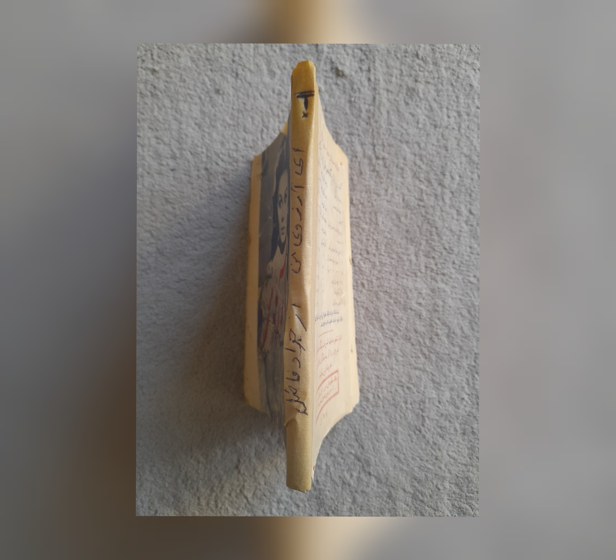مقداری از جلد کتاب برش خورده که در عکس مشخص است.