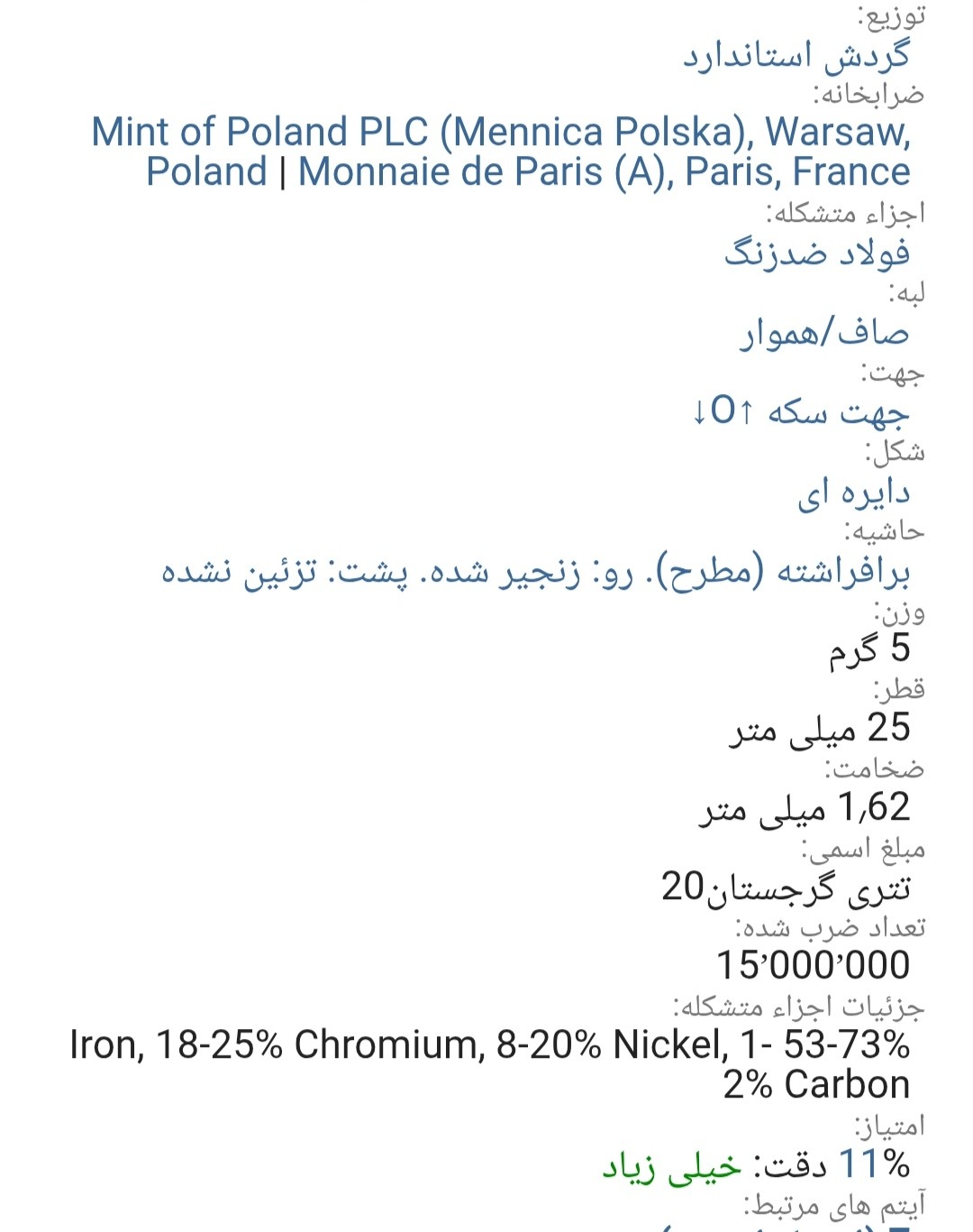 اسکن خود سکه می باشد از بعضی سکه تعداد هست برای انتخاب دوستان به صورت جداگانه در فروشگاه چیده شد تصاویراسکن ارائه شده از کالا ملاک خرید قرار دهید در تصاویر دوم سوم چهارم توضیحات کامل هست از ابعاد وزن قطر کالادر خرید خود دقت کنید