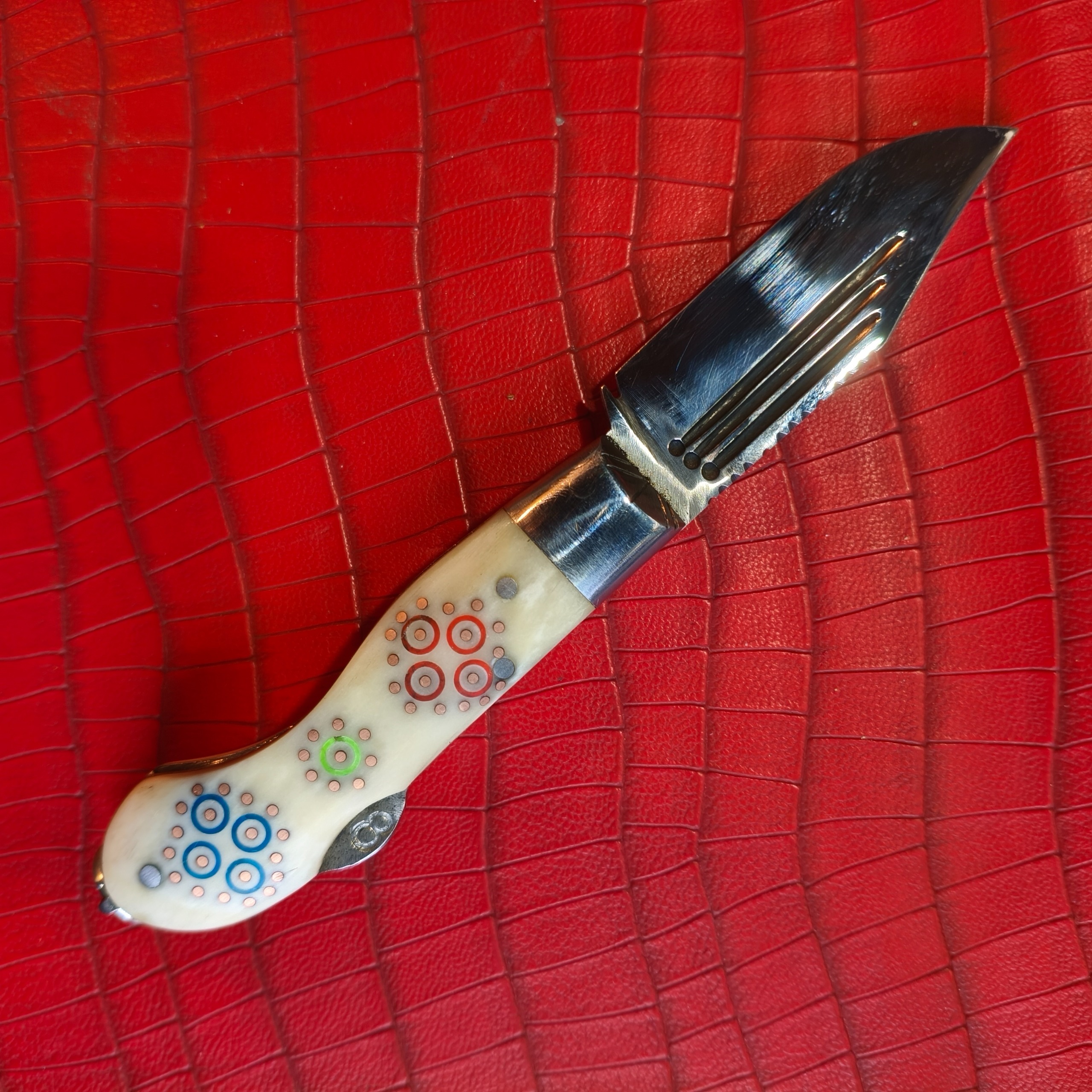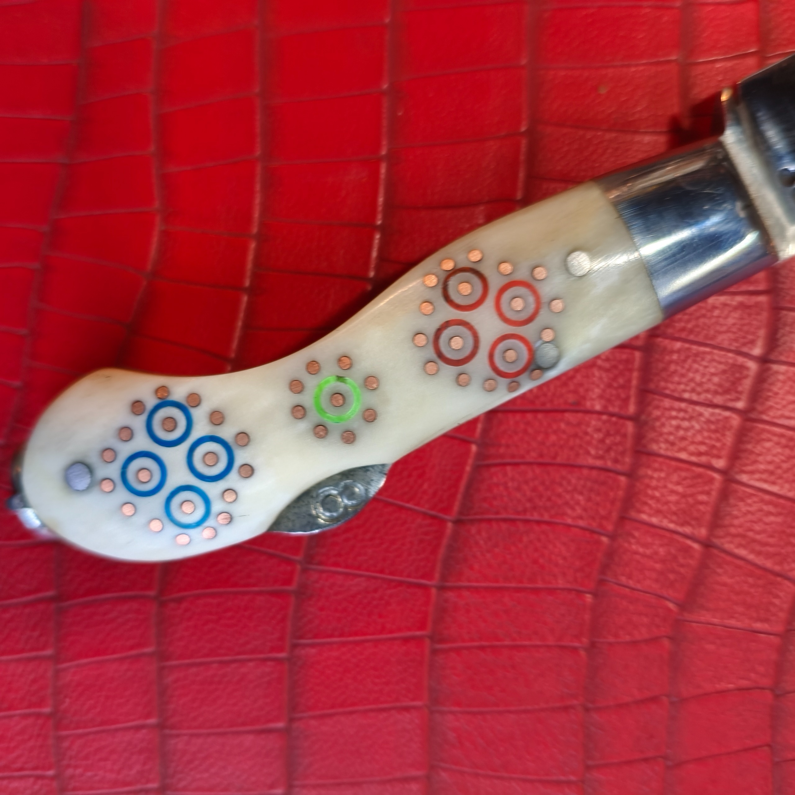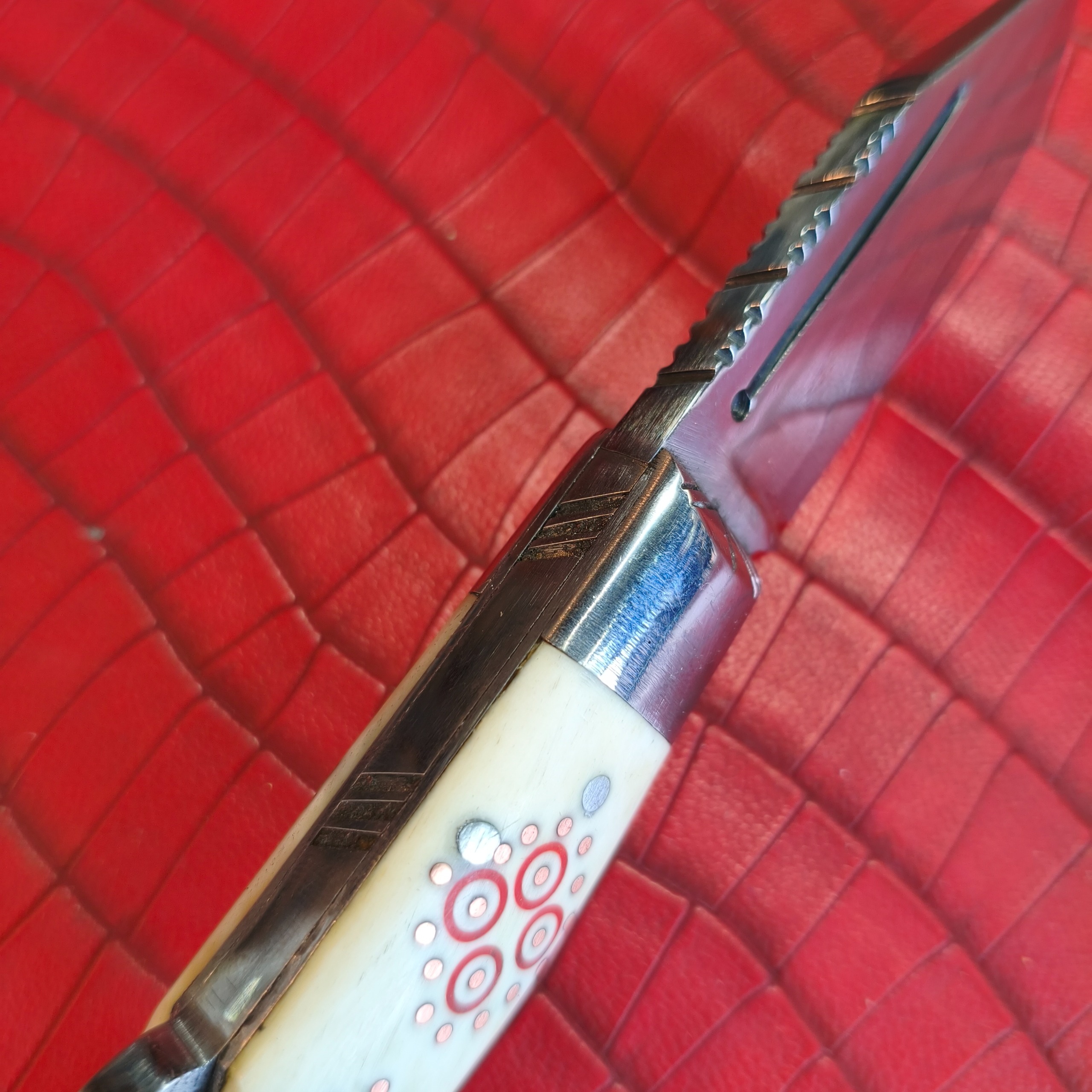 چاقوی بالای اصل دسته استخوان شتر میخ دوزی و گلکاری شده